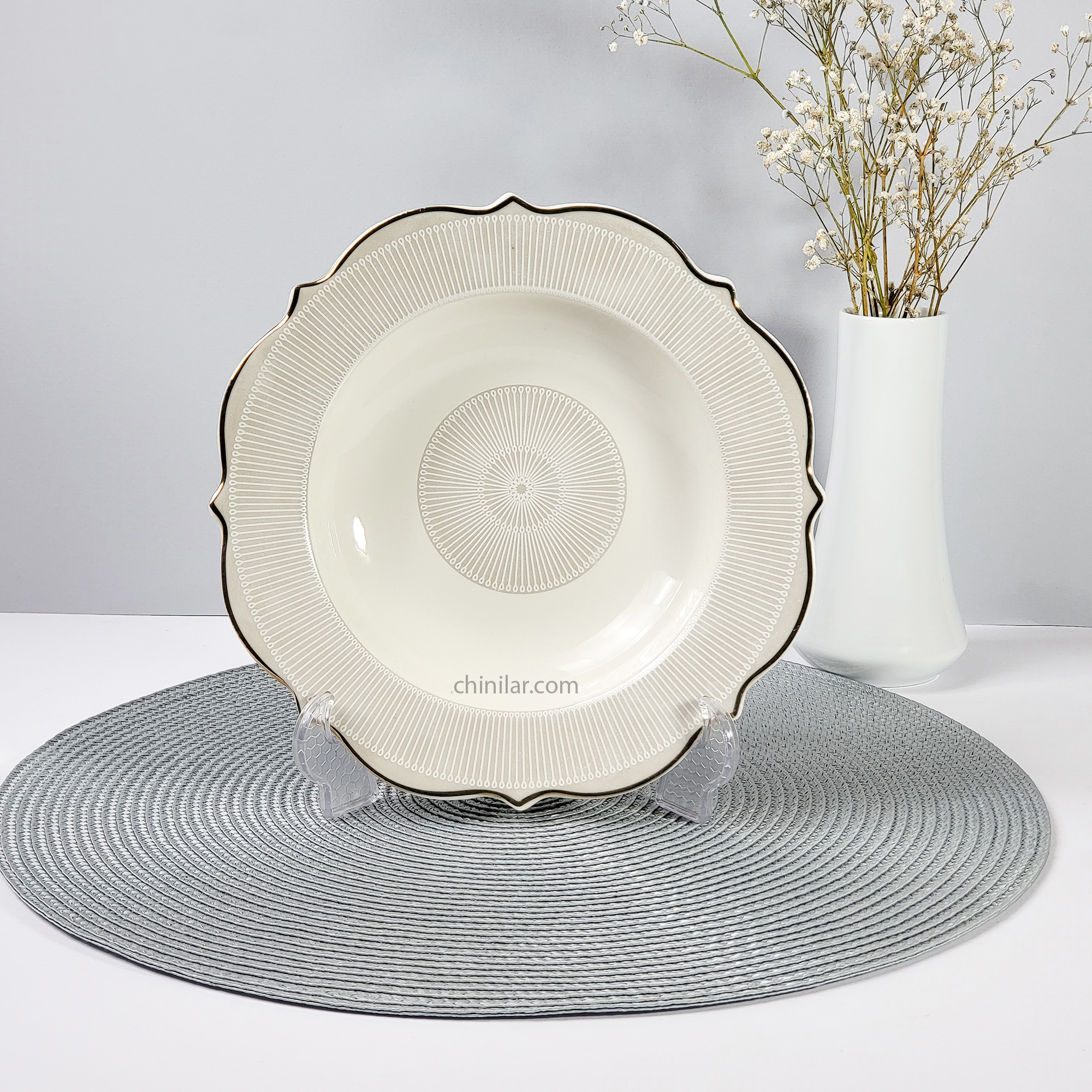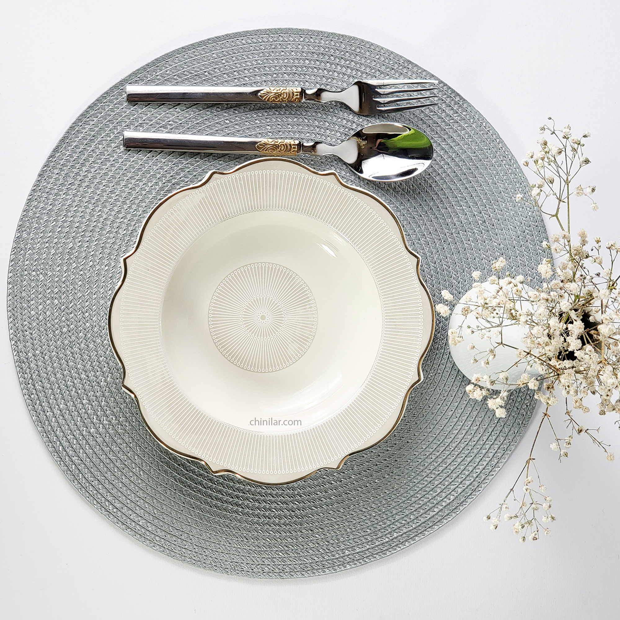 در ترکیب با بشقاب تخت پلوخوری و کاسه سالاد یا سوپ، میتوان یک چیدمان چشمنواز و کاملاً هماهنگ ایجاد کرد که هم در مهمانیهای خانوادگی و هم در مراسم رسمی جلوهگری خواهد کرد.
