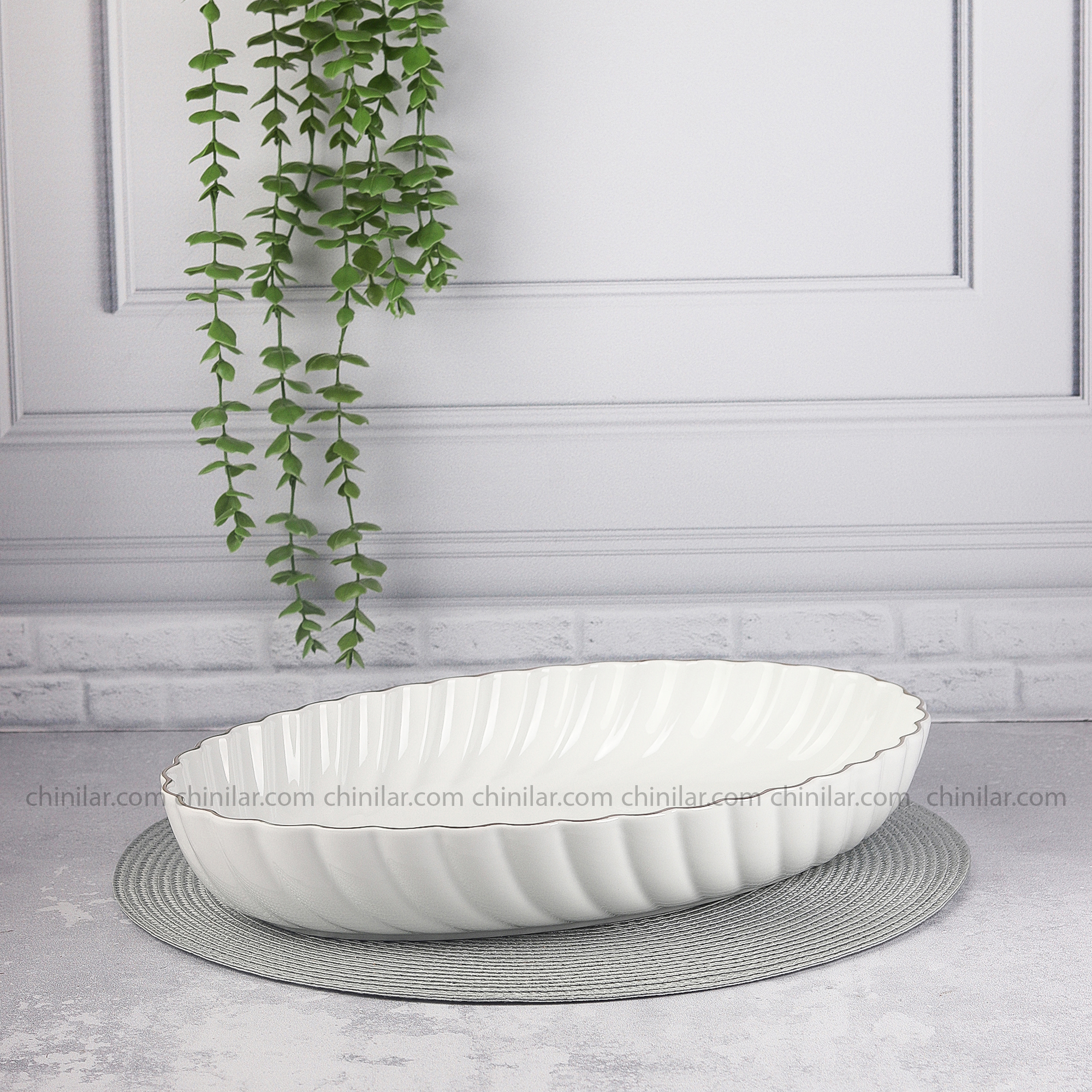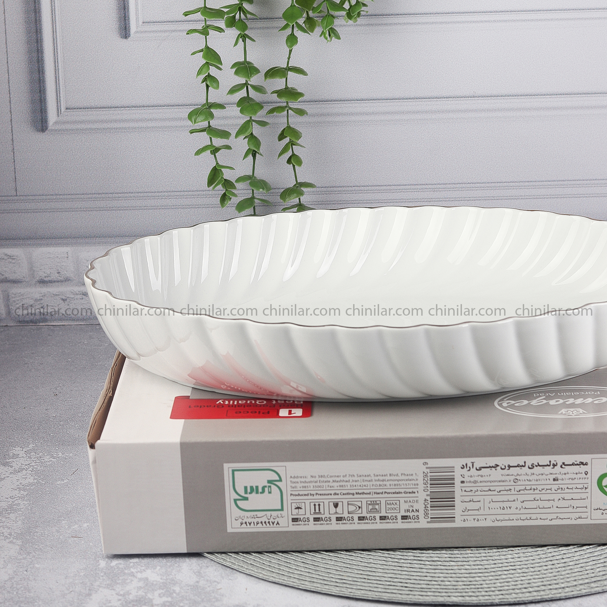 تابه بیضی بزرگ چینی لمون – قالب کارمن، خط طلا