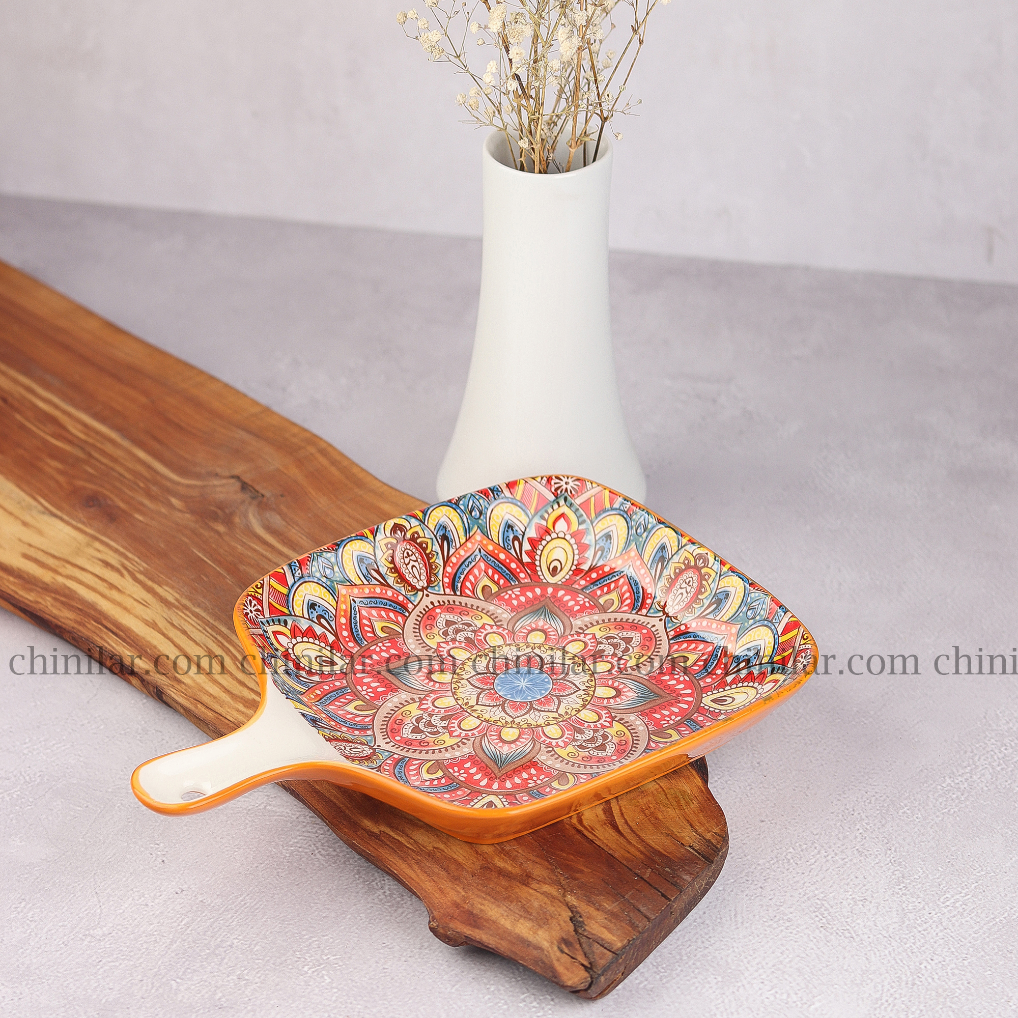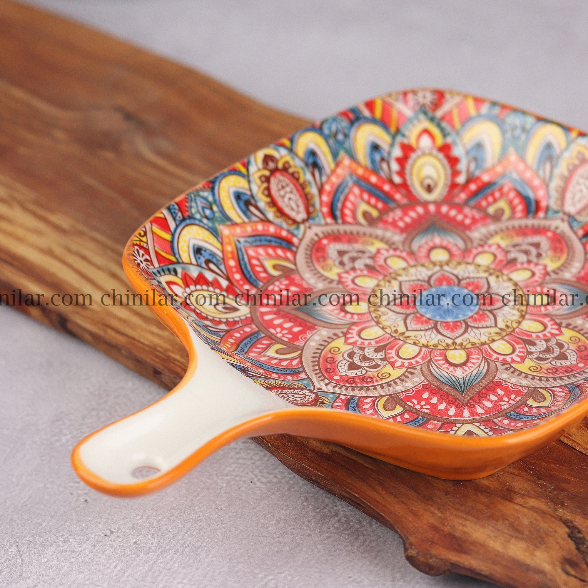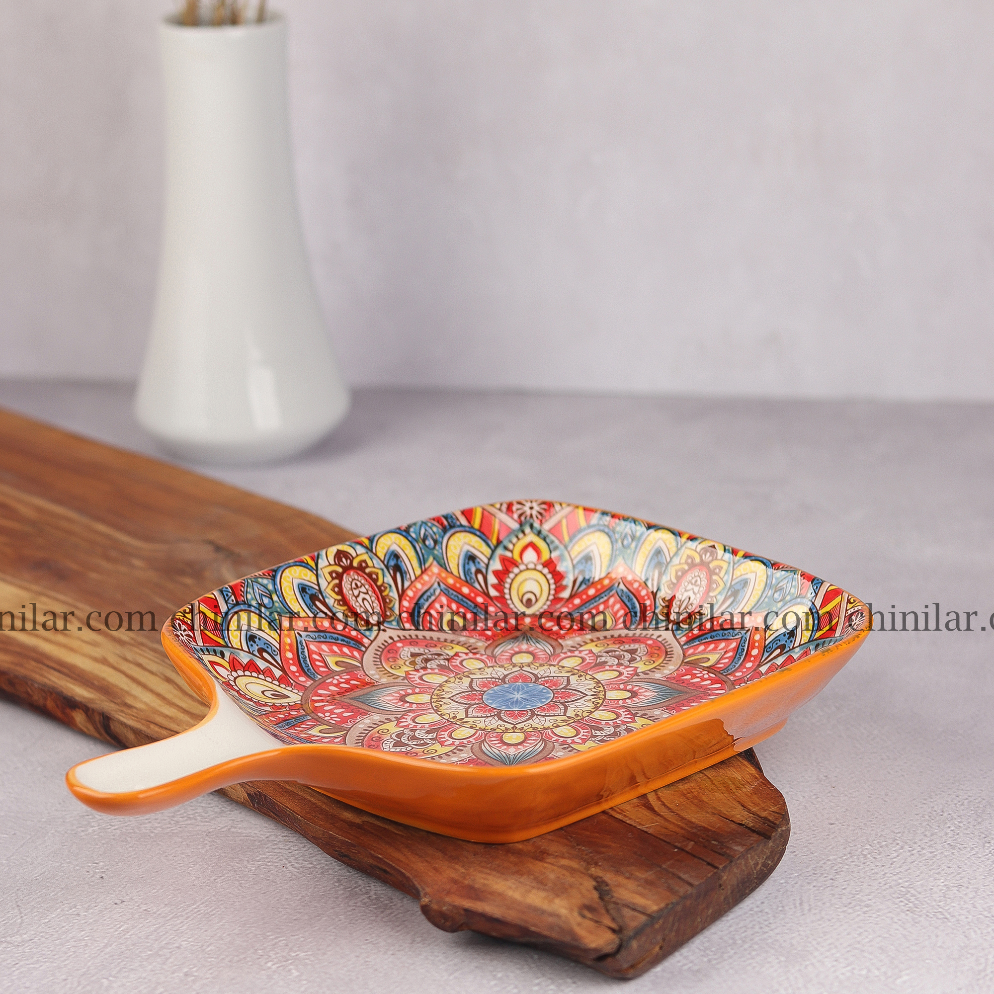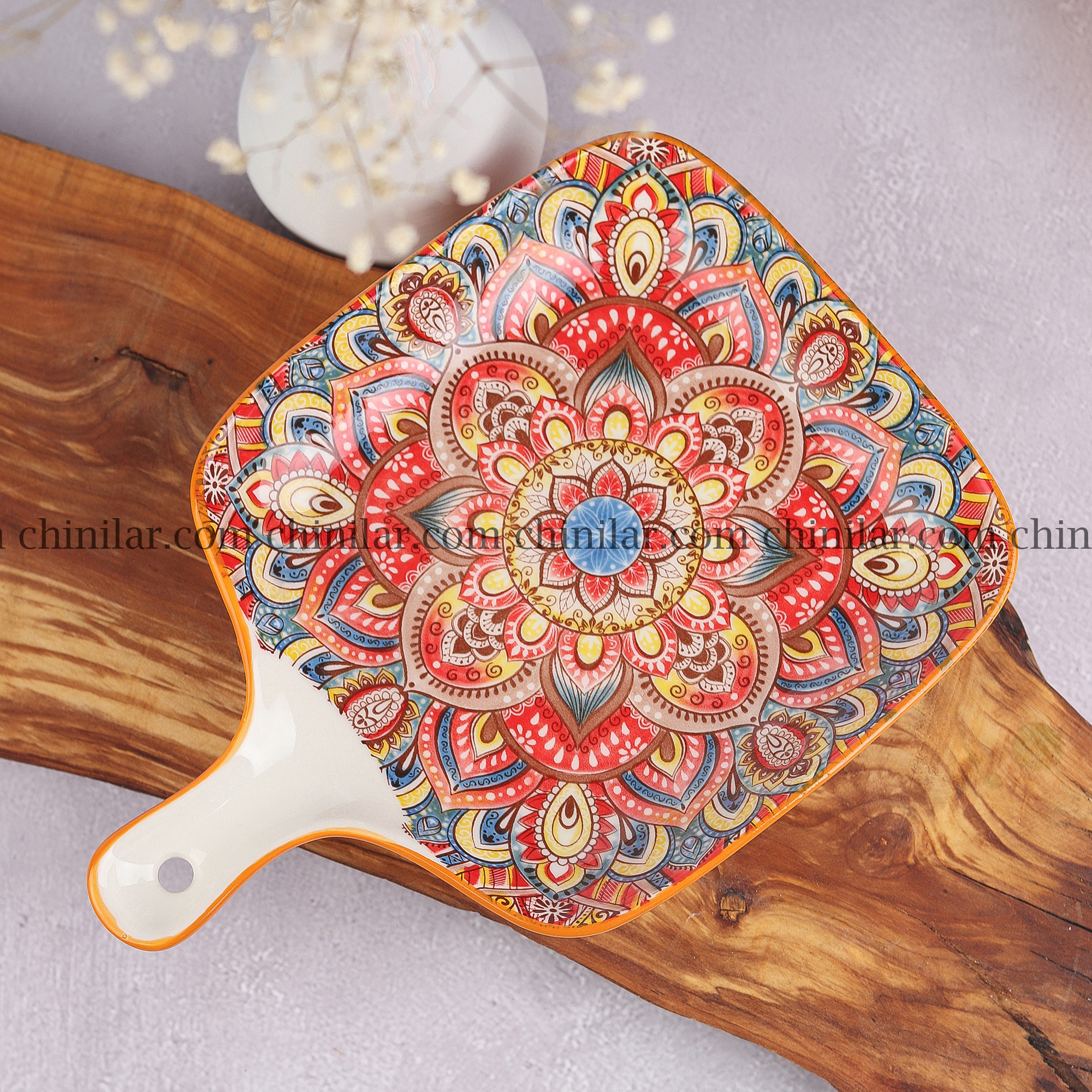ظرف کلاسیک طرح پاییز، ساخت کشور چین، با طراحی زیبا و ترکیبی از رنگ‌های گرم و پاییزی شامل نارنجی، قرمز، آبی، سبز، زرد و سفید، جلوه‌ای خاص و زنده به میز غذاخوری شما می‌بخشد. این ظرف باطول 23سانت- عرض 16سانت - عمق 3سانت، ابعادی مناسب برای سرو انواع غذاها و پذیرایی‌های خاص دارد.