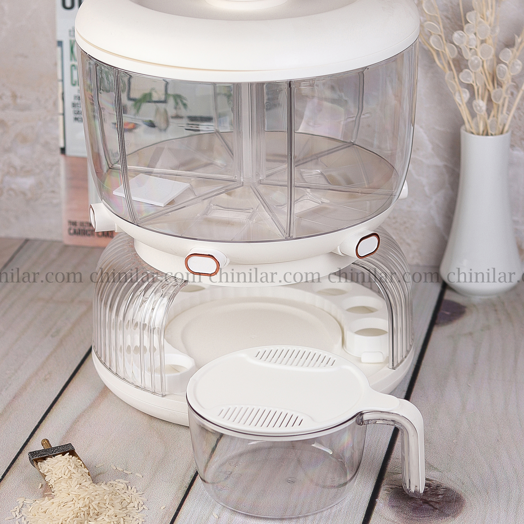با طراحی مدرن و بدنهی مقاوم پلاستیکی، این مدل دارای ۶ محفظهی مجزا برای نگهداری انواع حبوبات، برنج، جو دوسر، خشکبار و دالهاست.