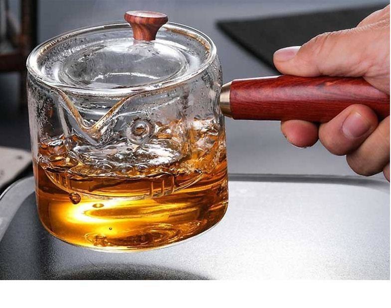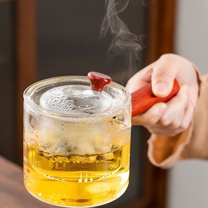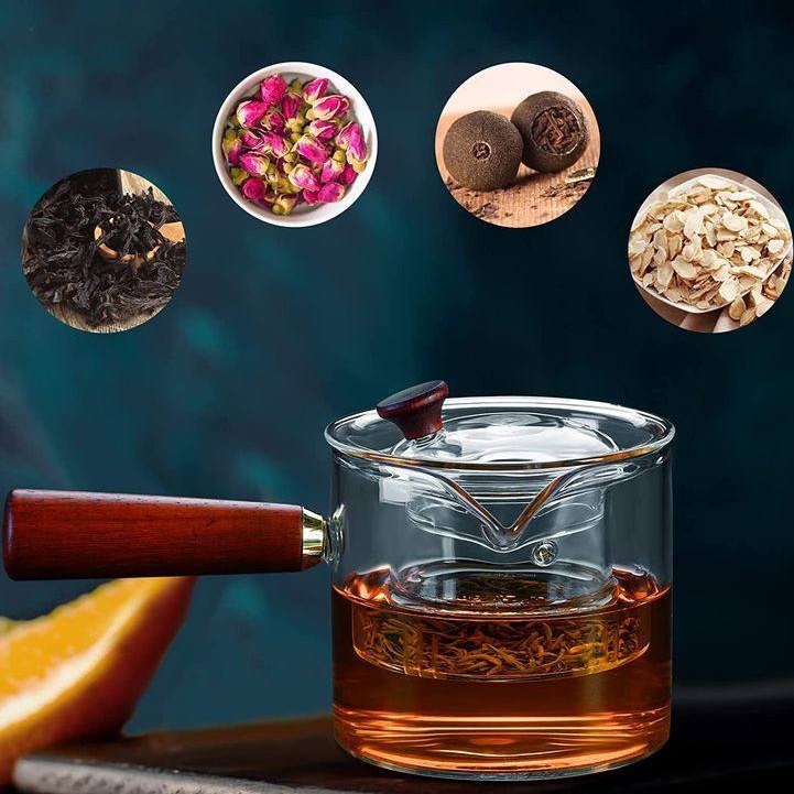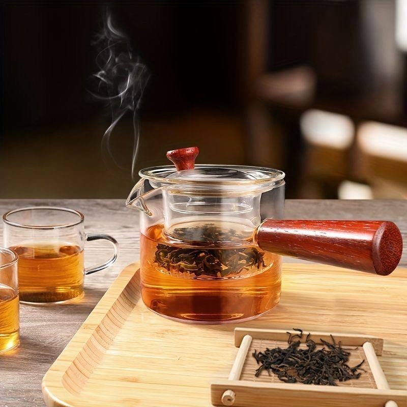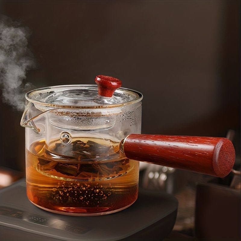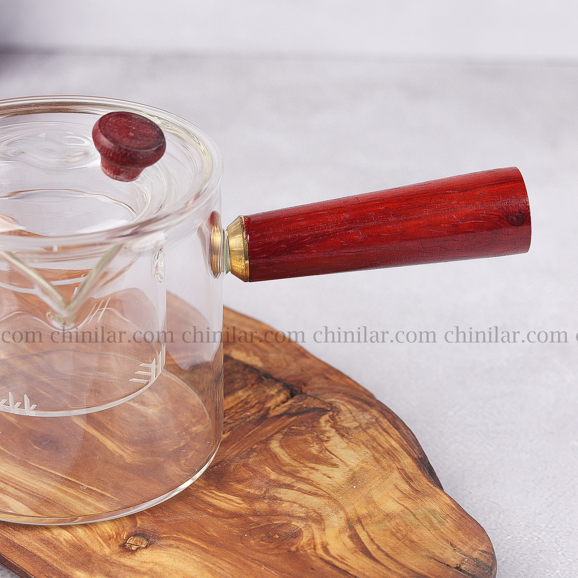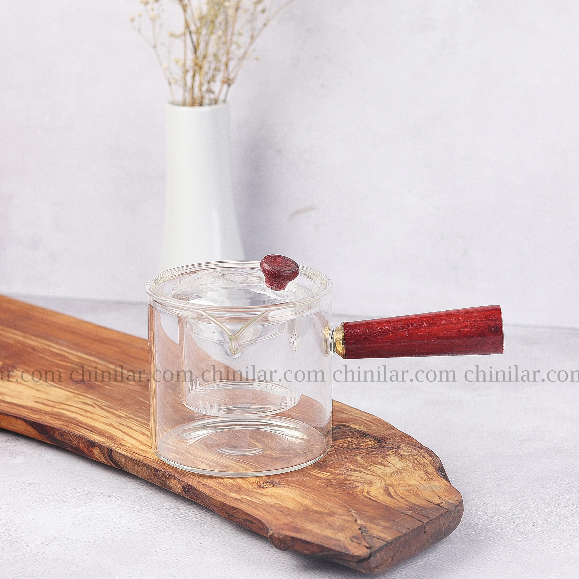 قوری پیرکس چینی، صافی دار و دسته چوبی | شفاف و کاربردی