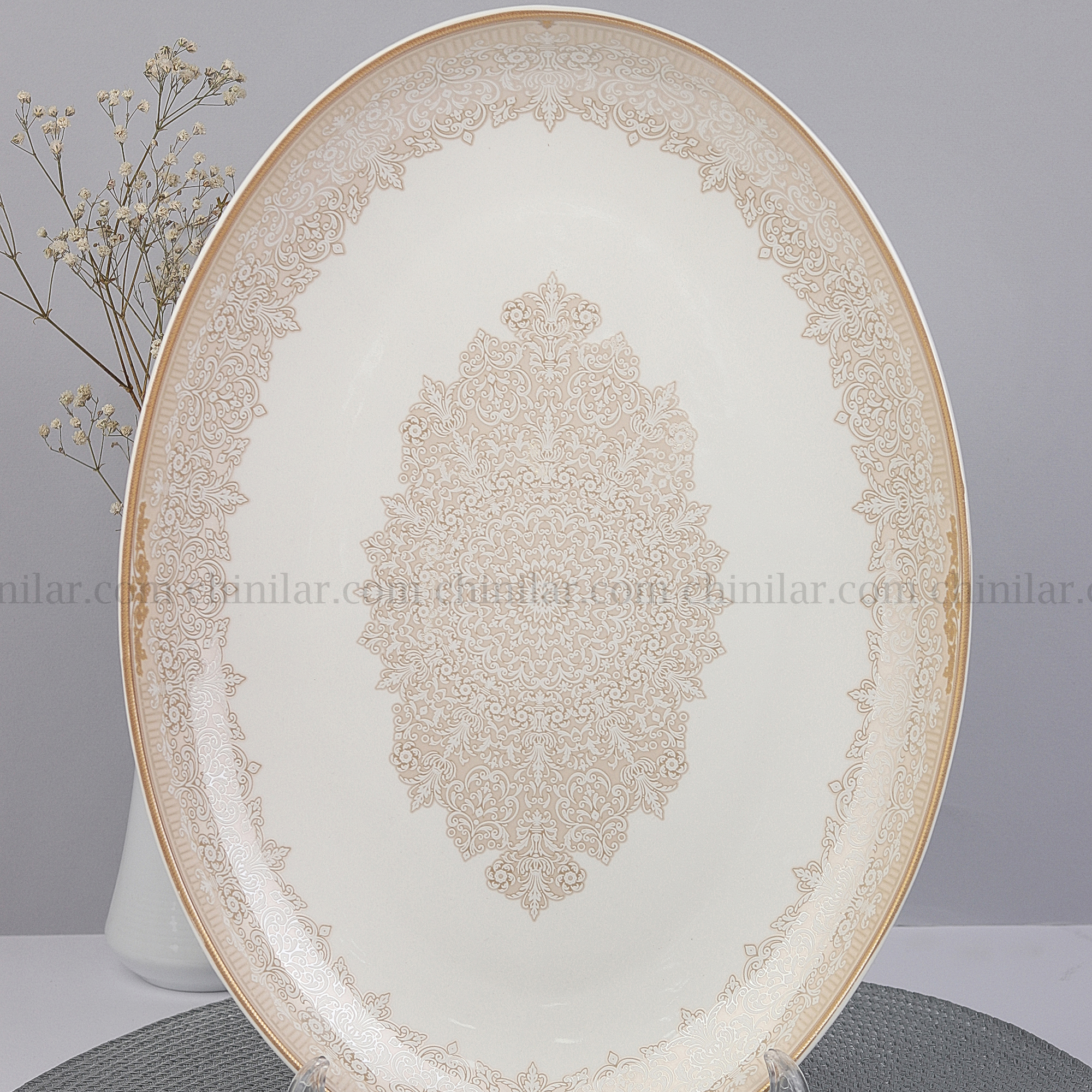 دیس بزرگ طرح ماندگار از برند برونچو، با قالبی کلاسیک و ترکیب رنگ شیک کرم و طلایی، جلوهای چشمگیر به سفرههای شما میبخشد. این دیس از چینی نیوبن ساخته شده و برای سرو غذا، میوه یا پذیراییهای رسمی گزینهای ایدهآل است.