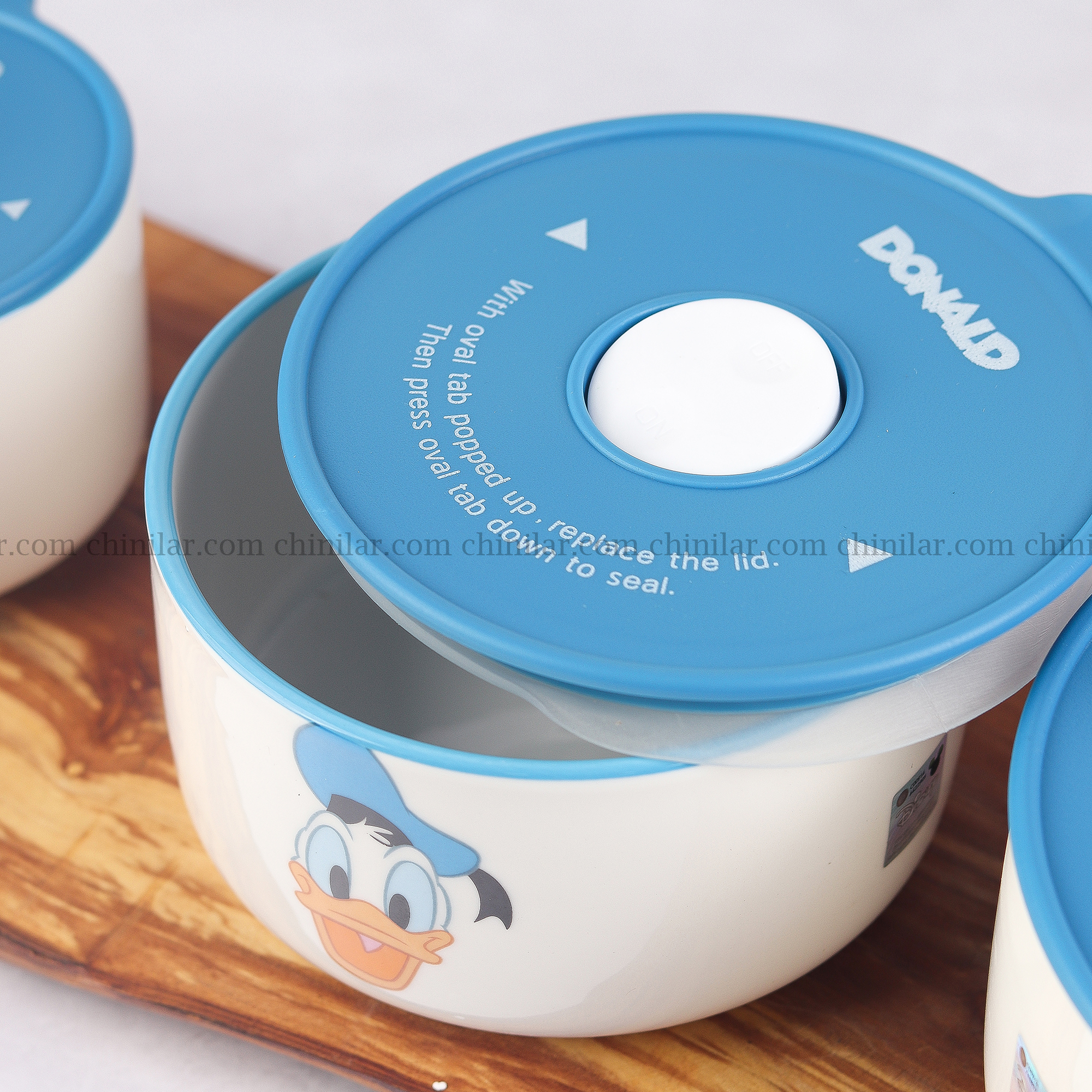 اگر دنبال یک سرویس متفاوت و کاربردی برای سیسمونی یا سرو غذای کودک هستید، ست ظرف نگهدارنده غذا سرامیکی طرح دونالد بهترین انتخاب شماست. این ظروف سهتایی با طراحی بامزهی دونالد ، نهتنها جذاب و کودکانهاند، بلکه با بدنهی سرامیکی باکیفیت خود، سلامت و طعم طبیعی غذا را حفظ میکنند.