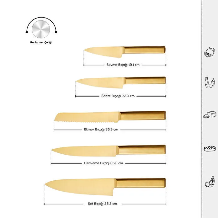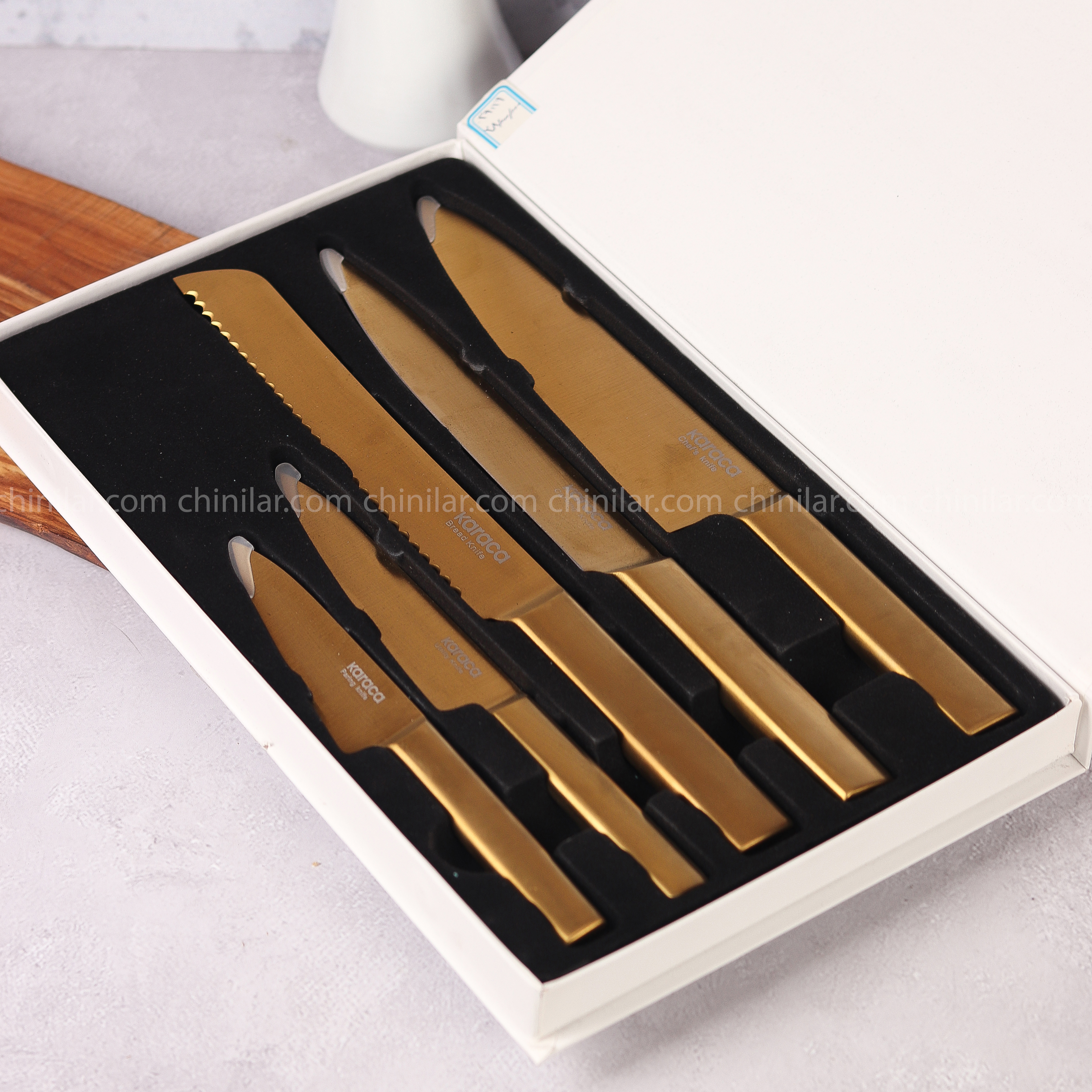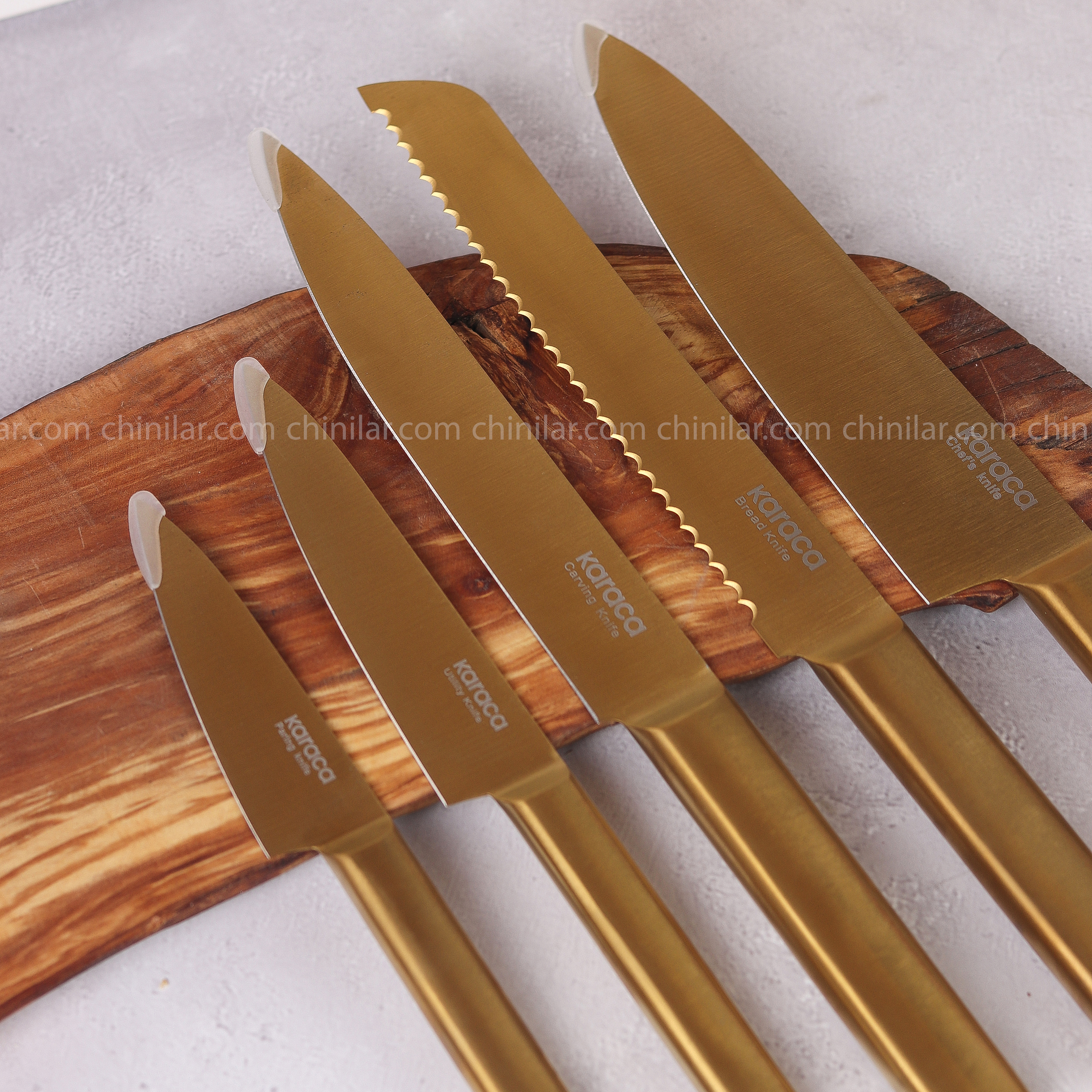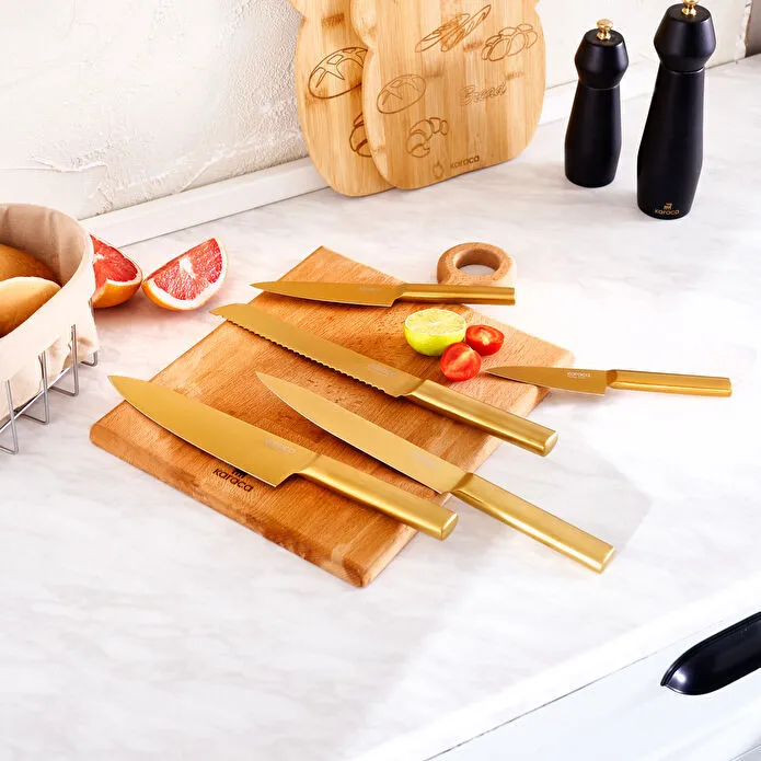 سرویس چاقو ۵ تایی KARACA | تیغه استیل ضد زنگ و طراحی طلایی شیک