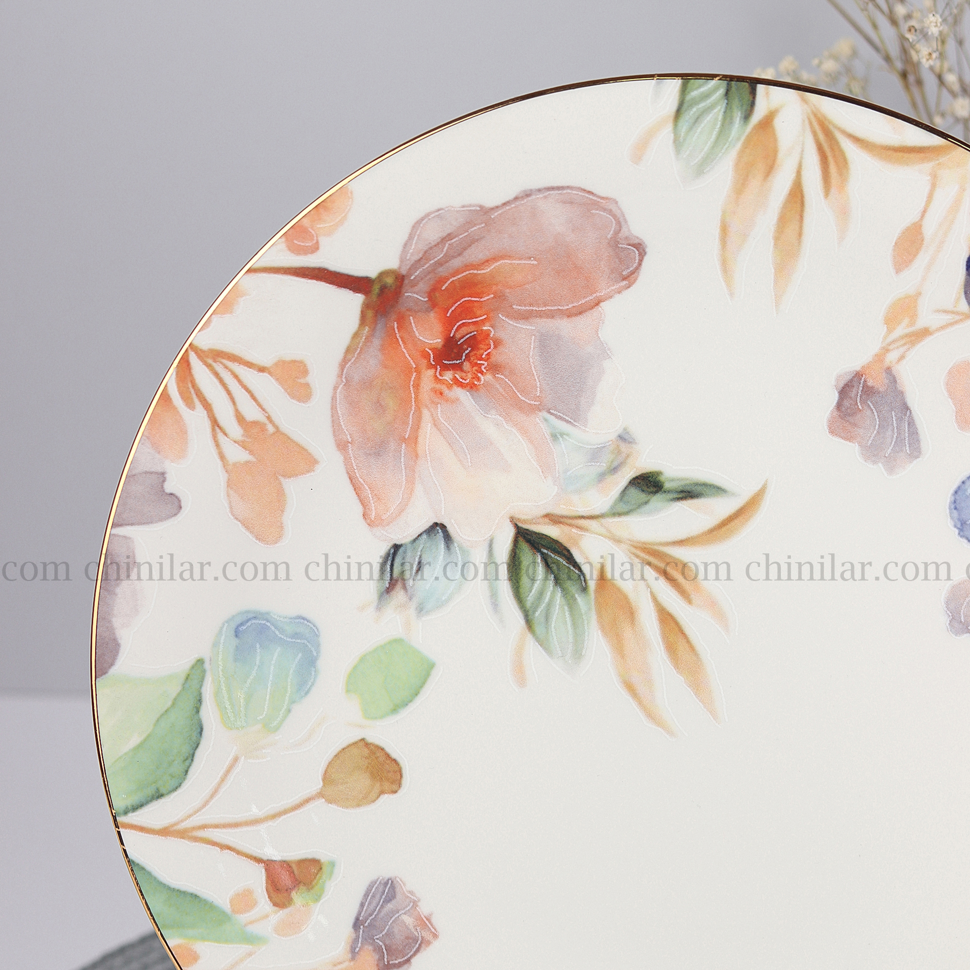 - طراحی گلهای ظریف و حاشیهی طلایی، جلوهای لوکس و منحصربهفرد به میز میبخشد.