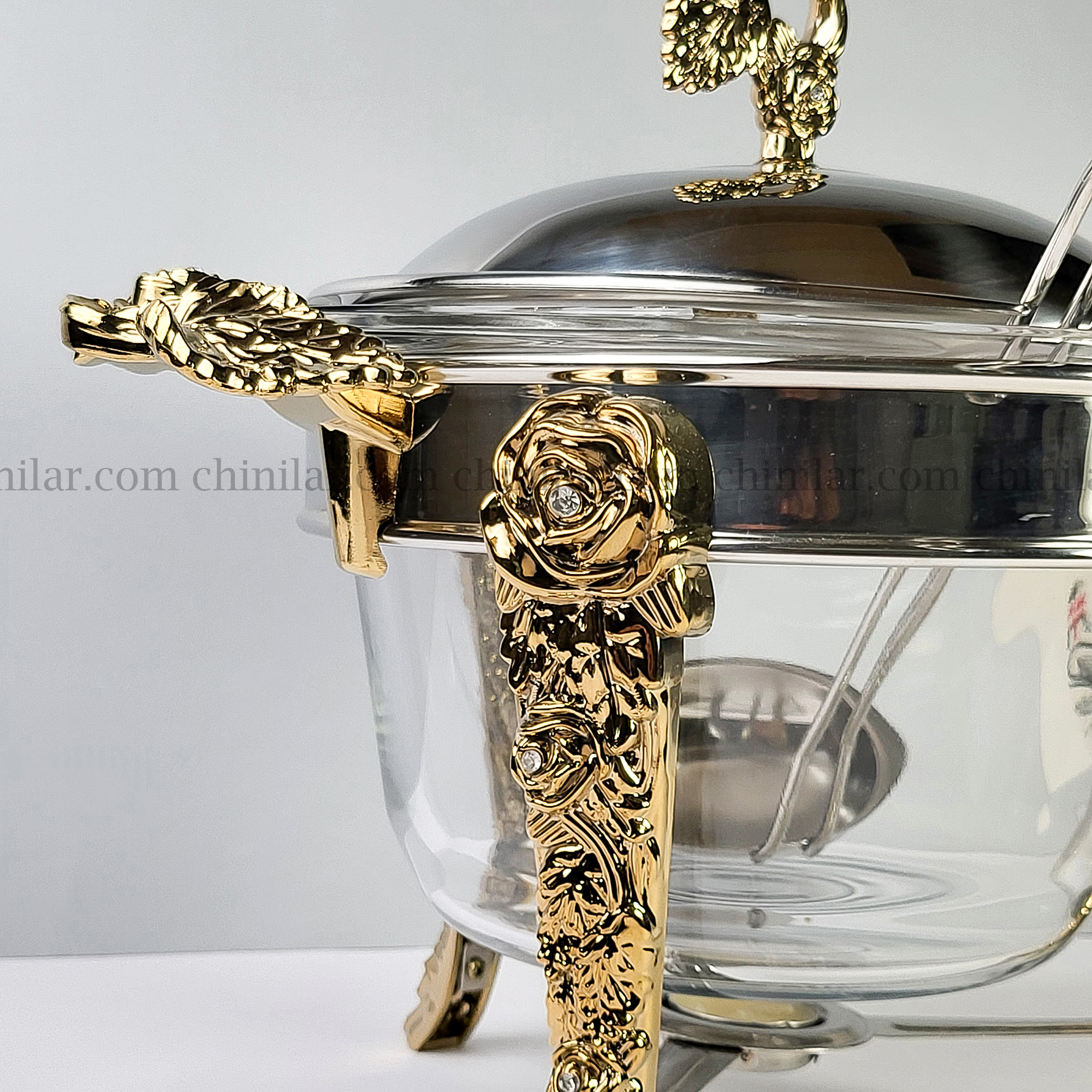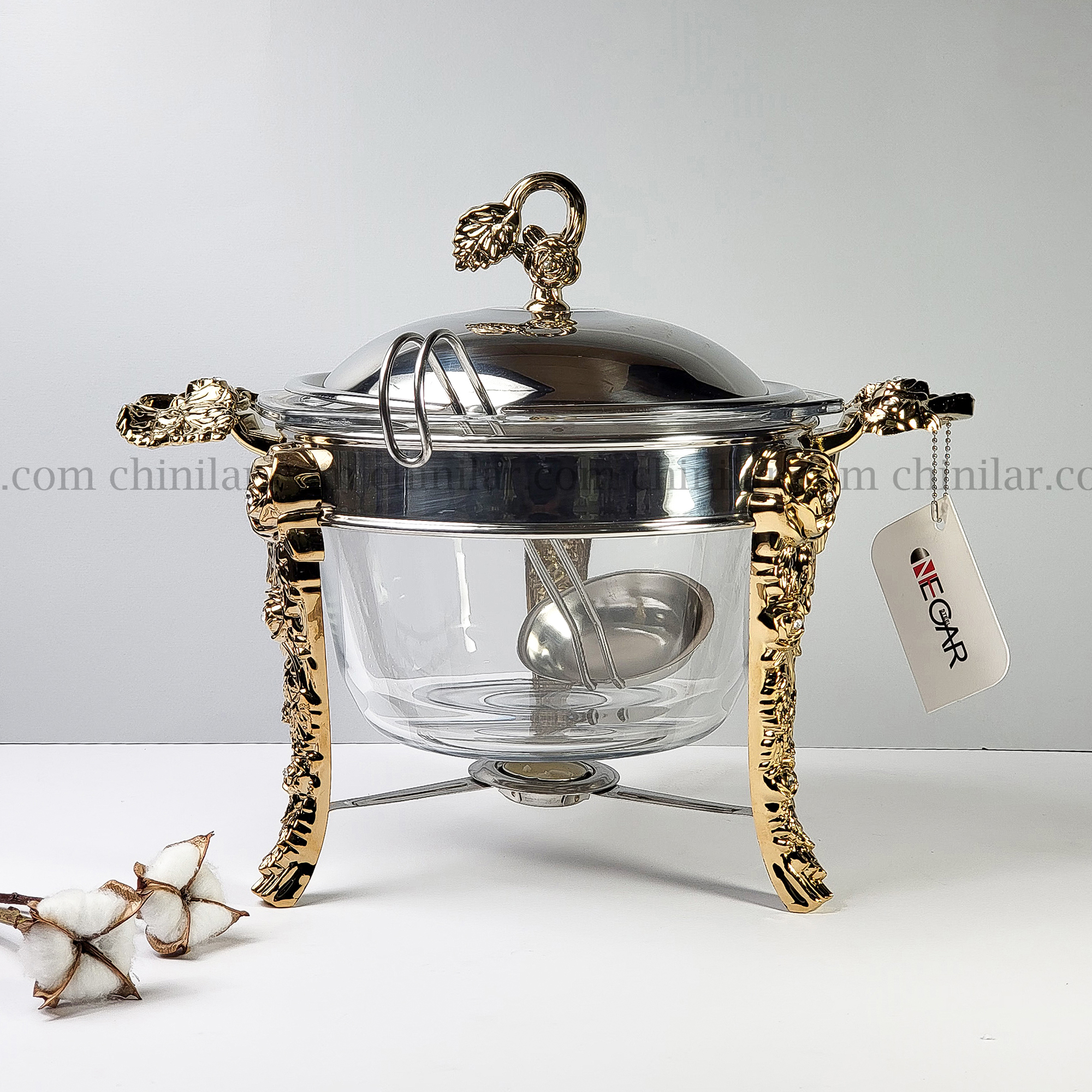 سوفله سوپ خوری نگار با طراحی زیبا و بدنه استیل ضدزنگ، انتخابی لوکس برای پذیرایی از مهمانان است. این محصول با طرح رز و رنگ دسته طلایی، جلوه‌ای خاص به سفره و میز پذیرایی شما می‌بخشد. دسته‌ها و پایه‌های ABS علاوه بر استحکام، در برابر حرارت مقاوم هستند و استفاده‌ای ایمن را فراهم می‌کنند.
