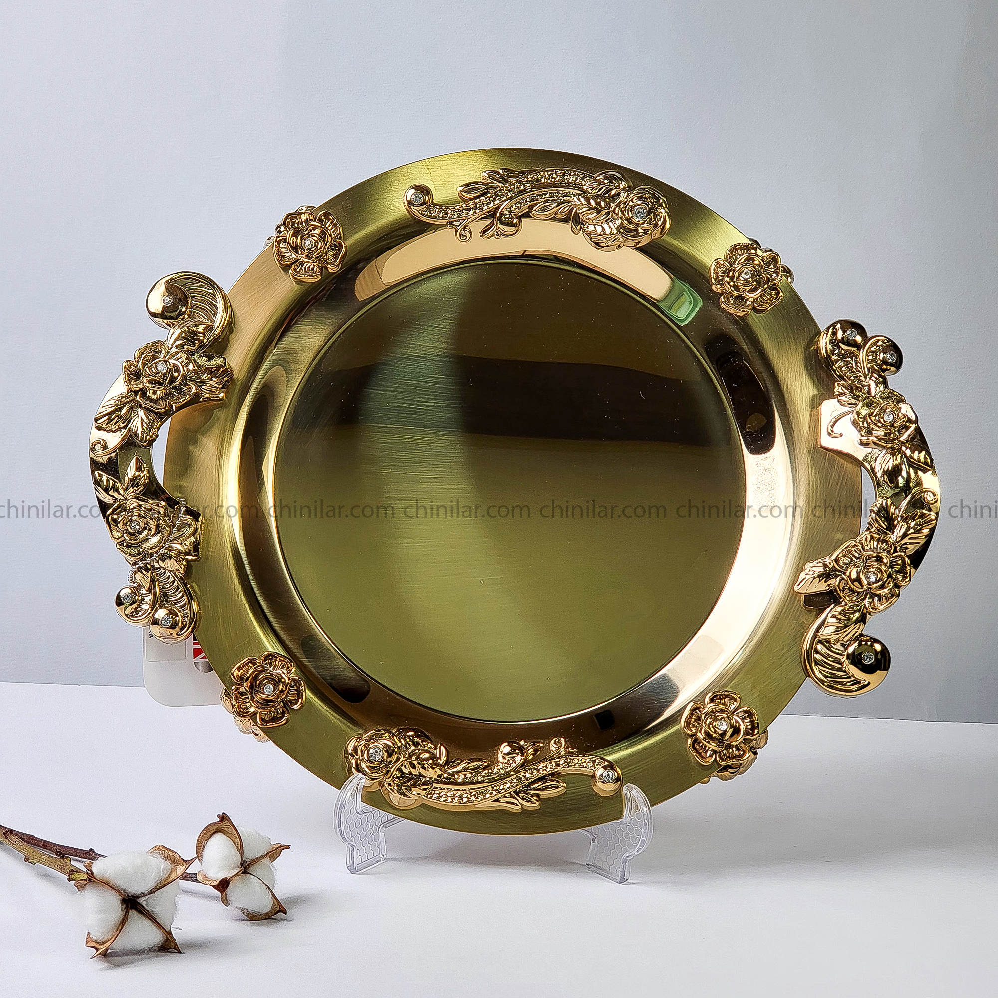 سینی گرد طرح گلستان کد 618 از برند استیل نگار، انتخابی لوکس و بادوام برای پذیراییهای شیک است. این سینی از استیل ضدزنگ طلایی (آهنربا نگیر) ساخته شده که علاوه بر مقاومت در برابر زنگزدگی و خطوخش، جلوه براق و درخشنده خود را برای مدت طولانی حفظ میکند.