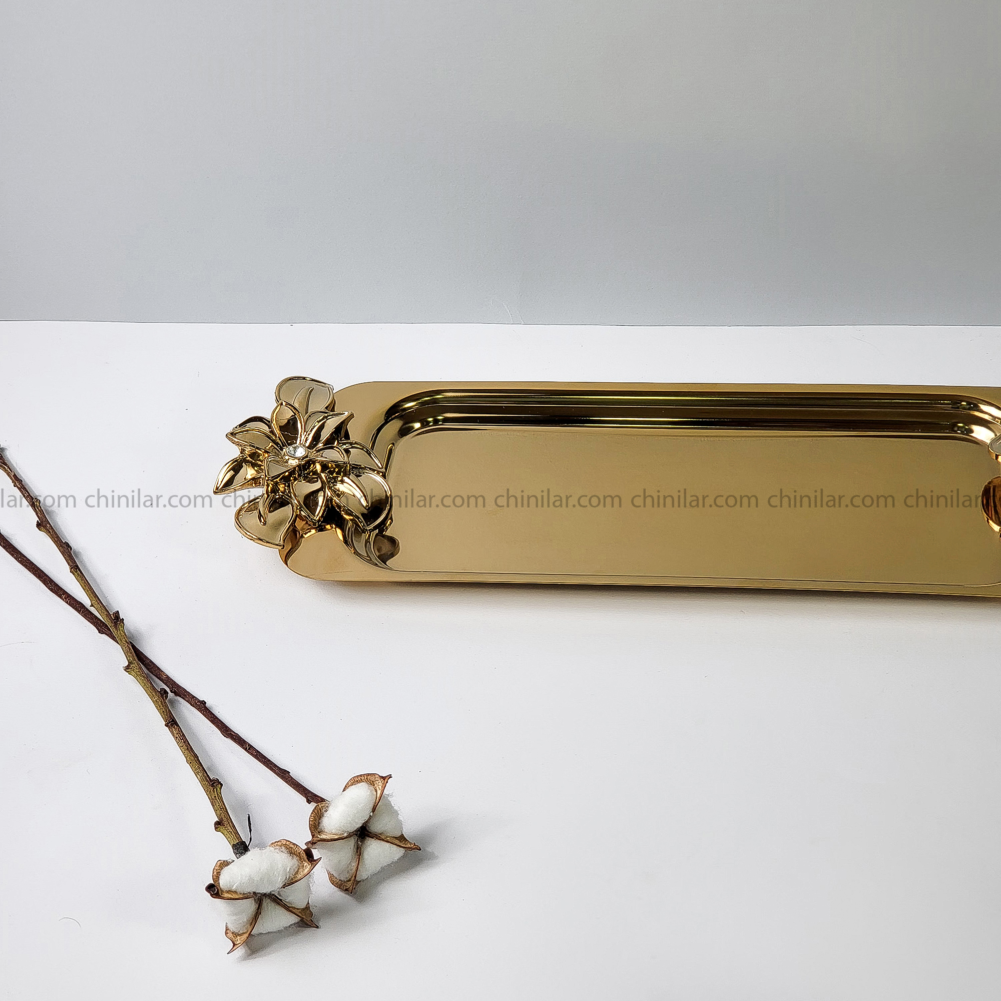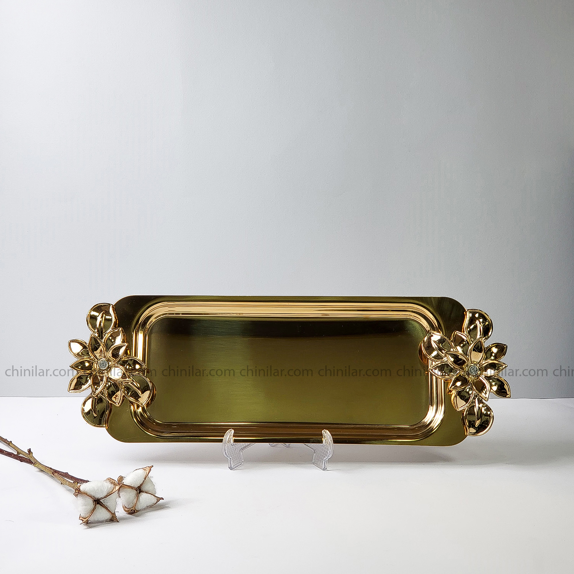 سینی و رولتخوری استیل نگار طرح لیلیوم کد 631 – تمام طلایی