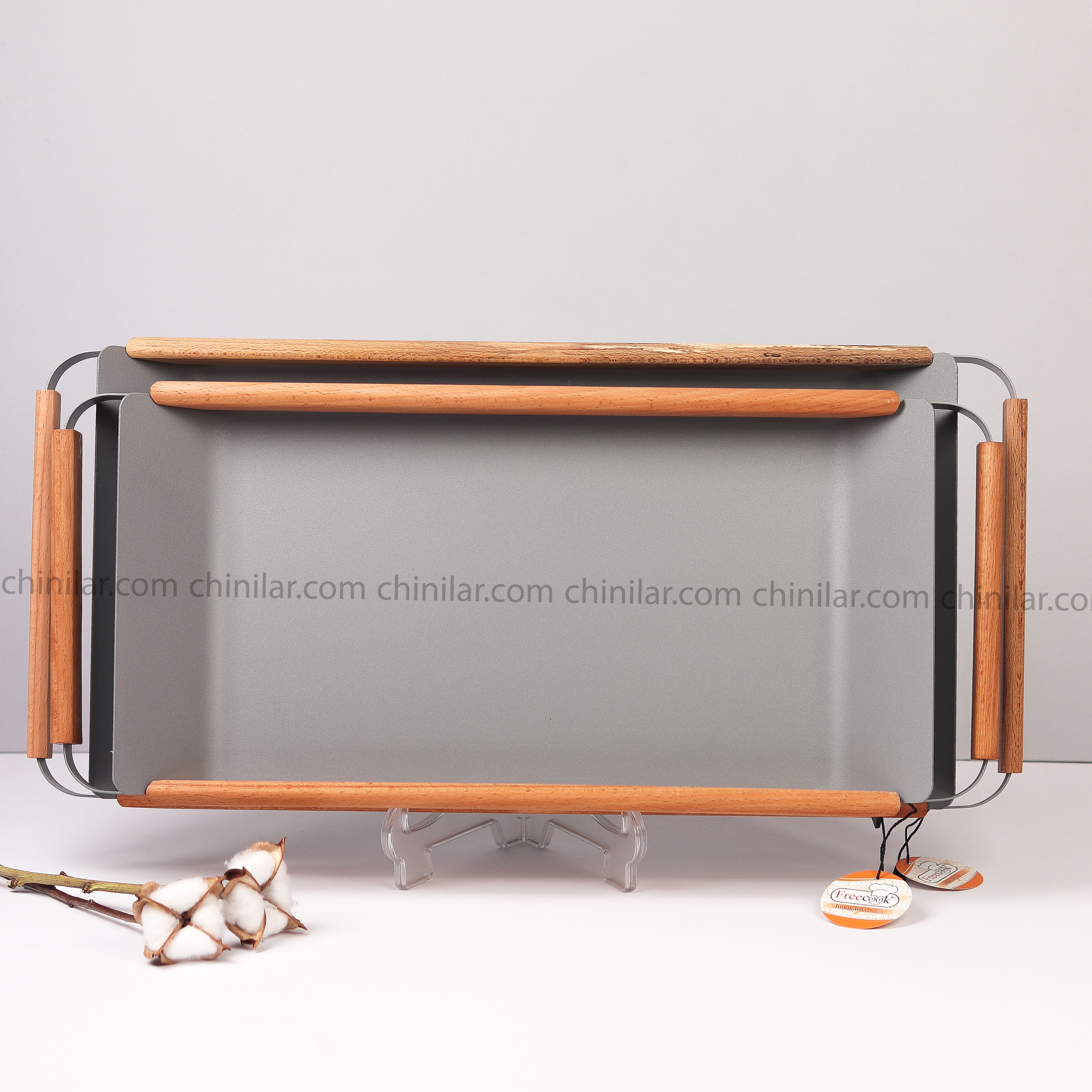 سینی ونیس مستطیل فری کوک سایز بزرگ رنگ طوسی دسته چوبی