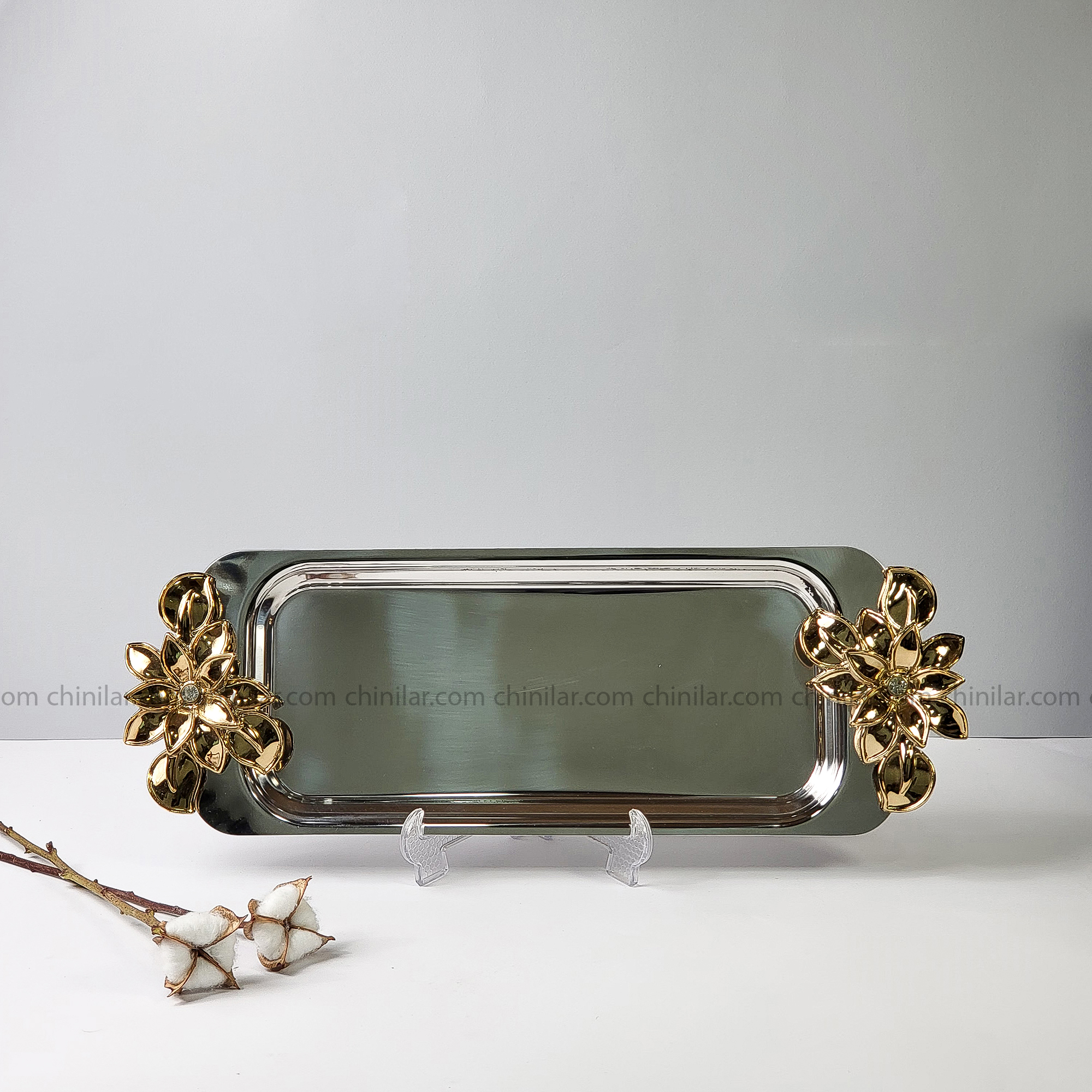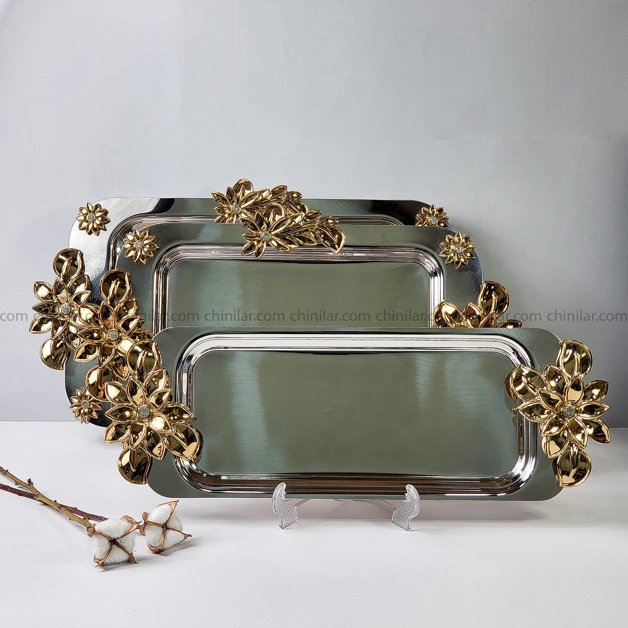 سینی و رولتخوری استیل نگار طرح لیلیوم کد 431 – دسته طلایی