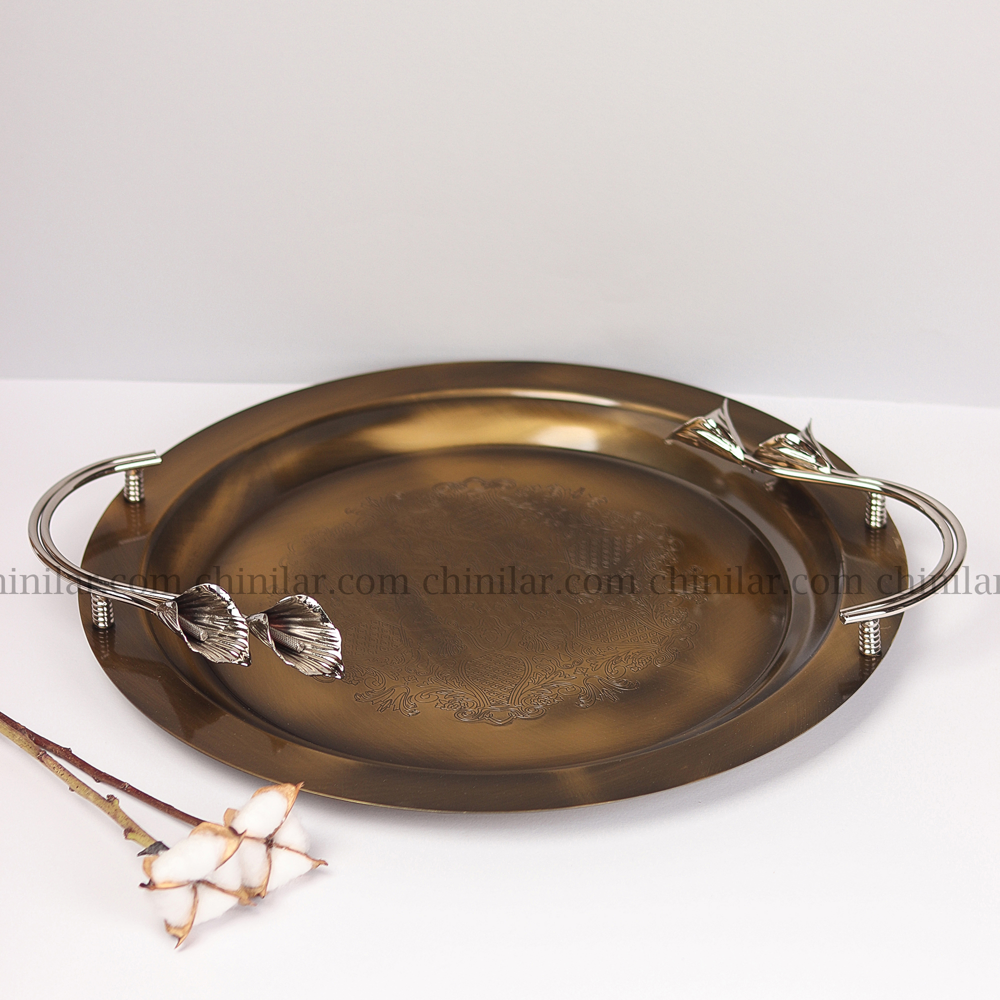 سینی لیلیوم گرد بنسای رنگ زیتونی