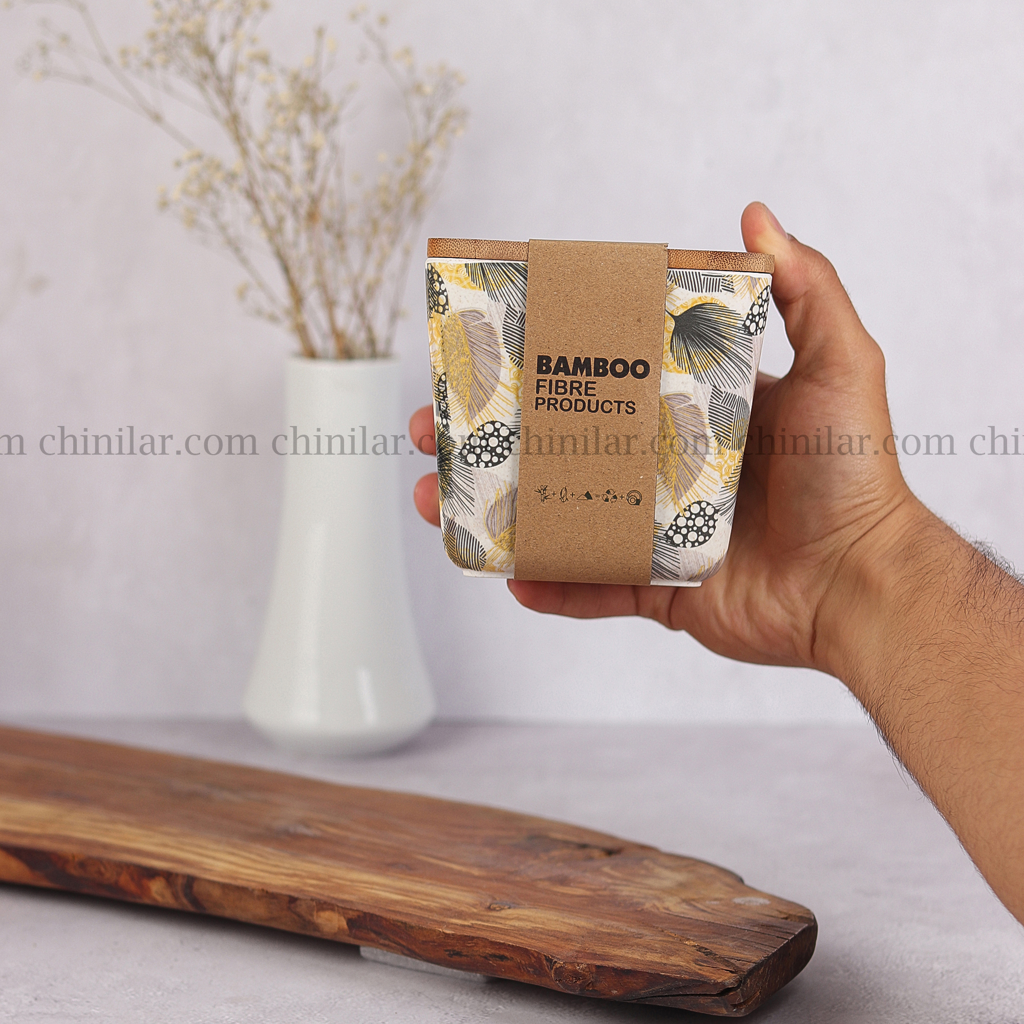 این ظرف با ترکیب هوشمندانهای از بامبو طبیعی، فیبر پودر ذرت و ملامین مقاوم ساخته شده؛