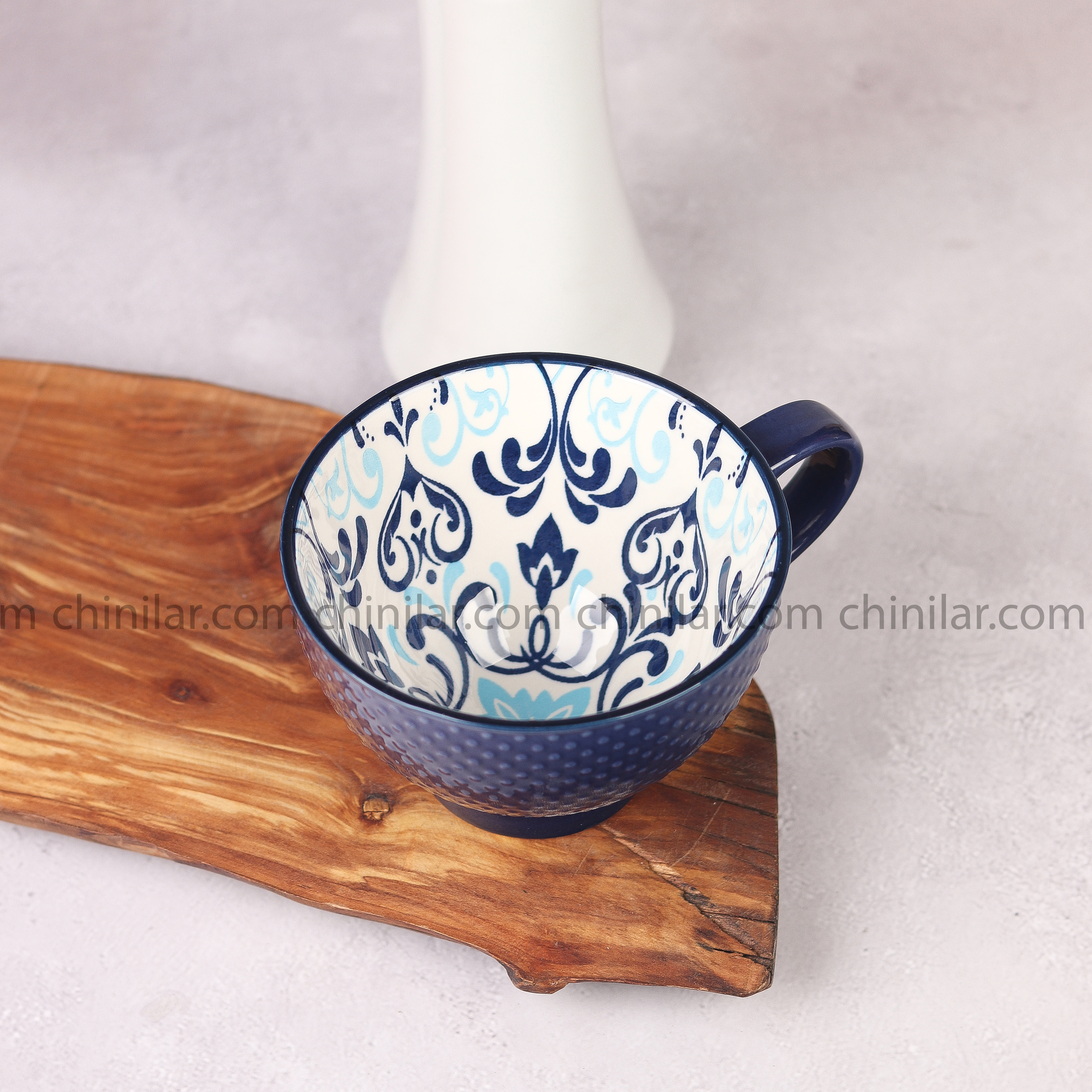 ترکیب رنگ آبی بدنه با نقشهای سرمهای و آبی روشن، حس آرامش و نظم را به میز نوشیدنی اضافه میکند و این لیوان را از مدلهای ساده و تکراری متمایز میسازد. به همین دلیل، علاوه بر استفاده شخصی، میتواند انتخابی مناسب برای هدیه یا تکمیل یک ست قهوهخوری شیک باشد.