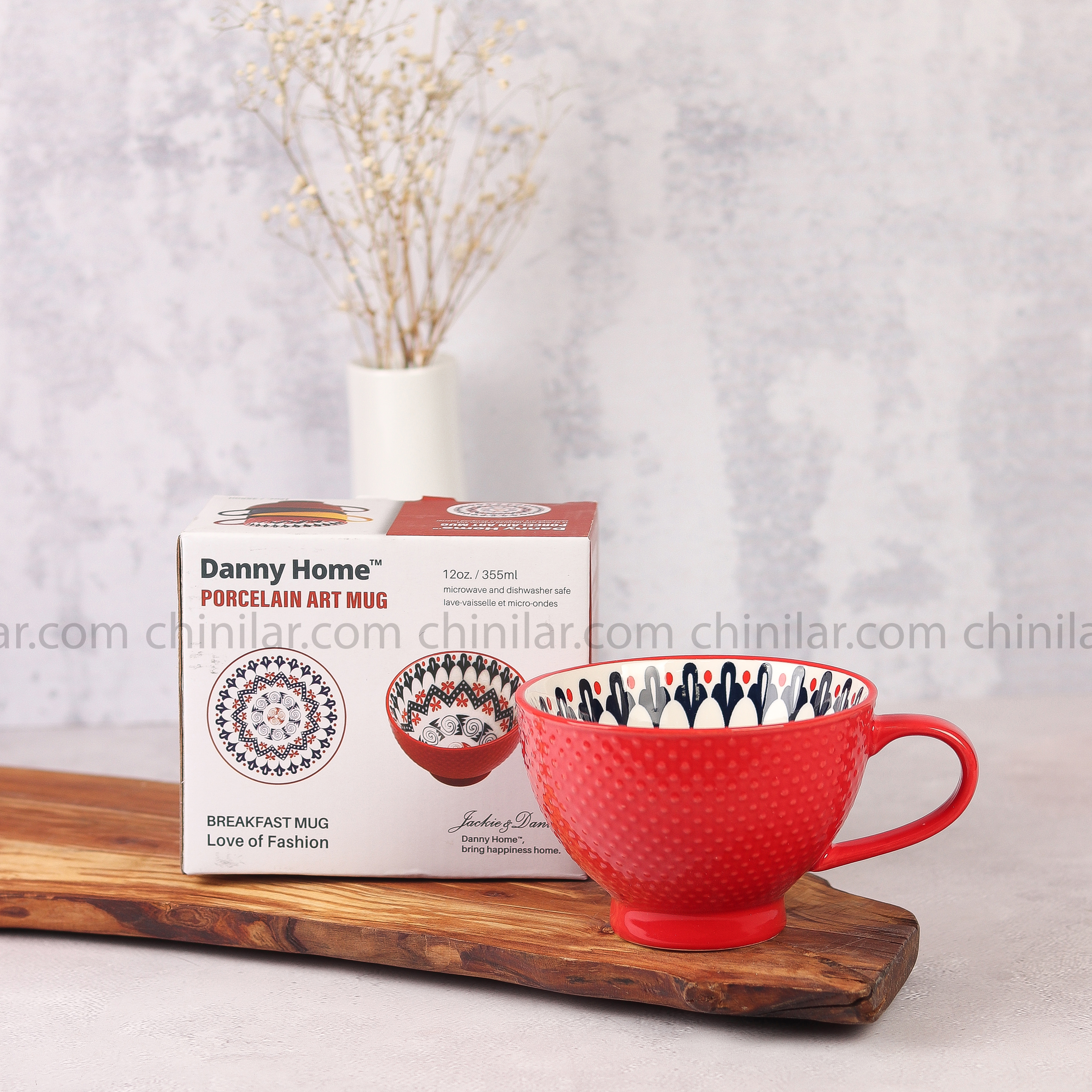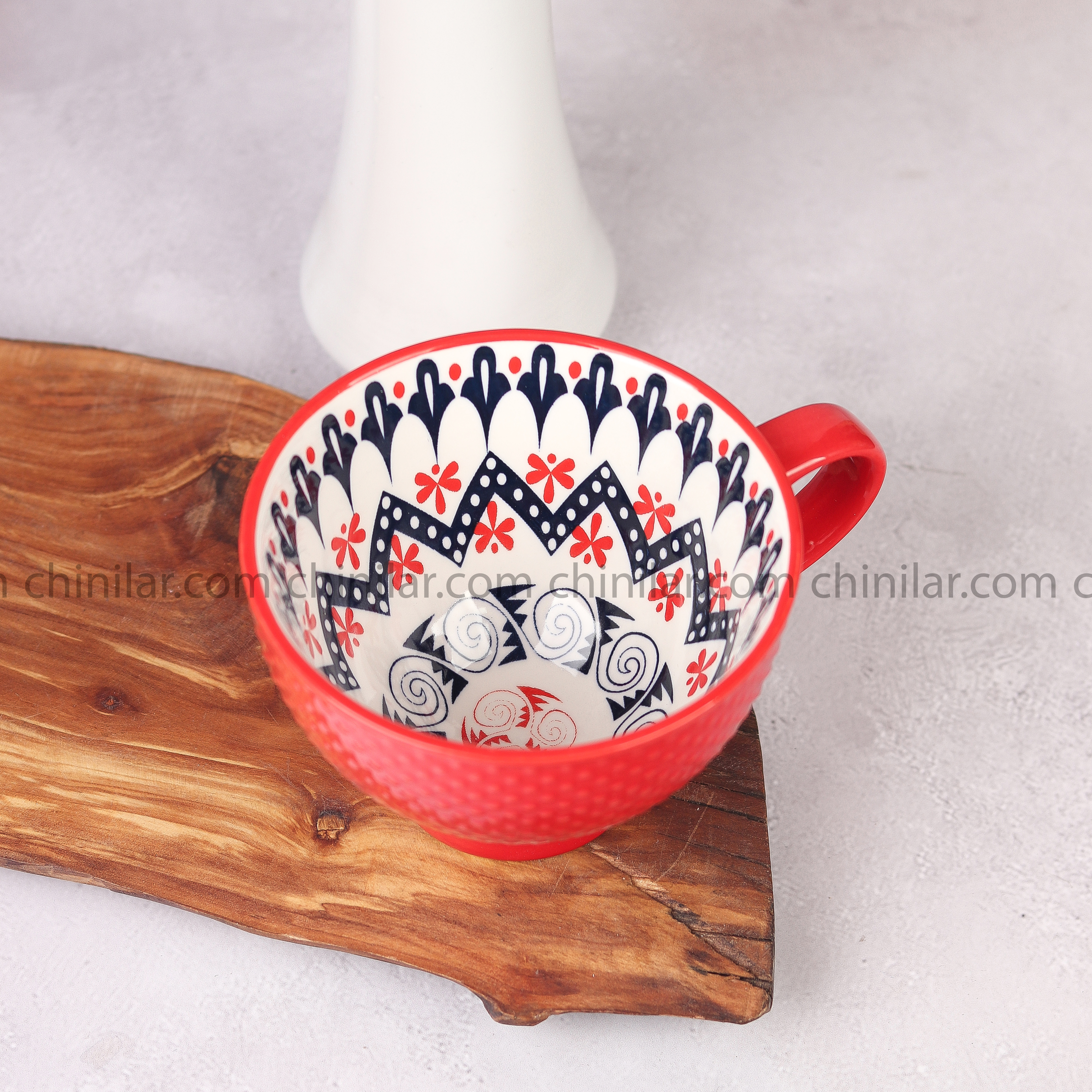 ترکیب رنگ قرمز بدنه با نقشهای قرمز و آبی، ظاهر شاد و جذابی به لیوان میدهد و آن را از مدلهای ساده متمایز میکند. این ویژگی باعث میشود لیوان نهتنها برای مصرف شخصی، بلکه برای هدیه دادن یا تکمیل یک ست قهوهخوری خاص نیز مناسب باشد.