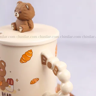ماگ درب دار تدی عروسکی همراه قاشق کد 4611
