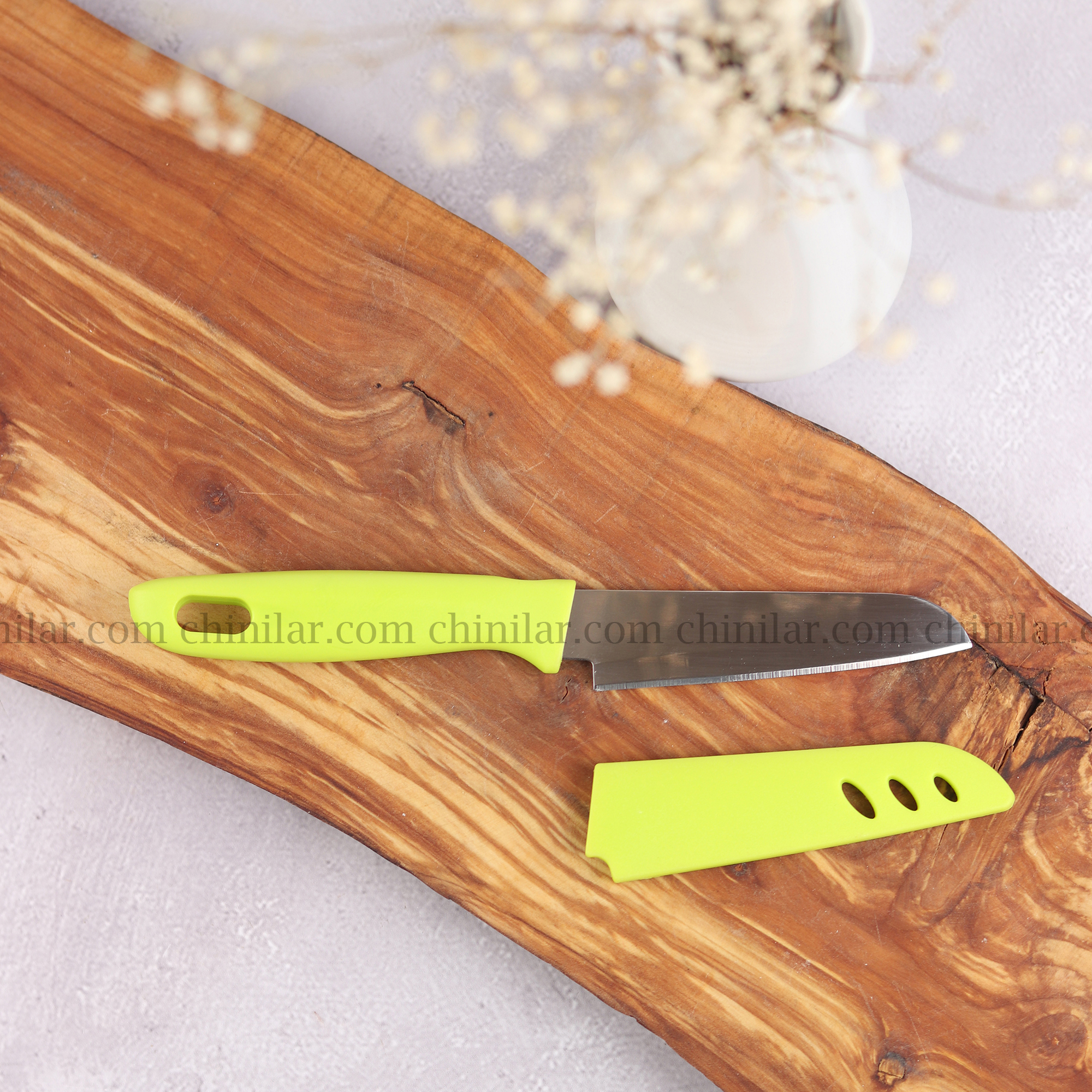 چاقو سبز استیل با غلاف محافظ | تیز، سبک و بادوام برای استفاده روزمره