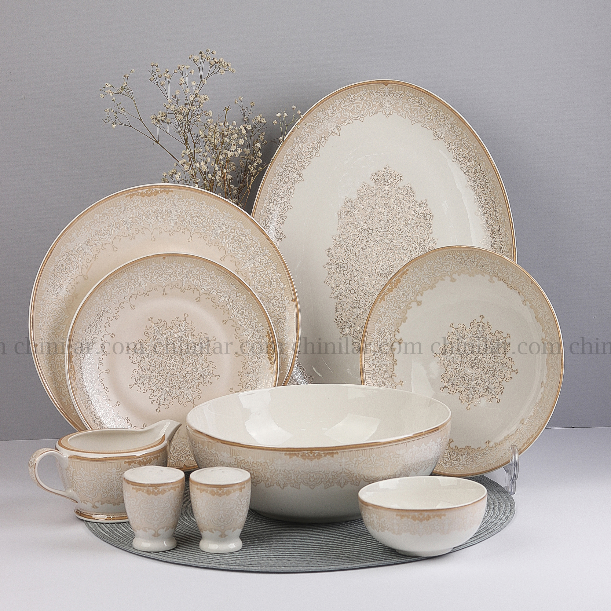 6 عدد بشقاب پلو خوری- 6 عددبشقاب خورشت خوری - 6عدد پیش دستی-یک عدد دیس بزرگ - 1 عدد کاسه سوپ و سالاد-پیاله - سس خوری- نمکپاش