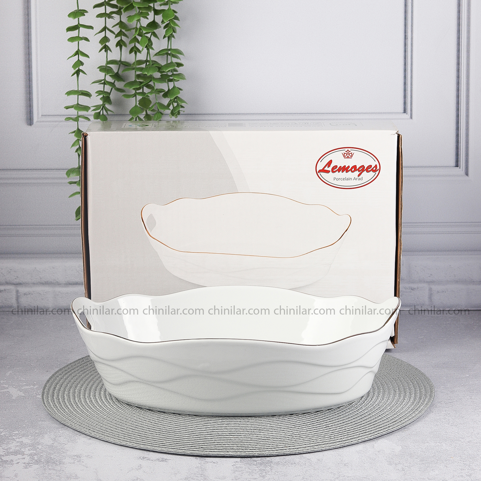 این محصول از طریق فروشگاه اینترنتی چینیلر ارائه میشود و با سایر ظروف طلادور قالب سزار قابل ست شدن است. فرم بیضی کاربردی، حجم بالا و تزئینات طلایی کلاسیک، آن را به یکی از انتخابهای ممتاز برای چیدمان رسمی و پذیرایی مجلل تبدیل کرده است.