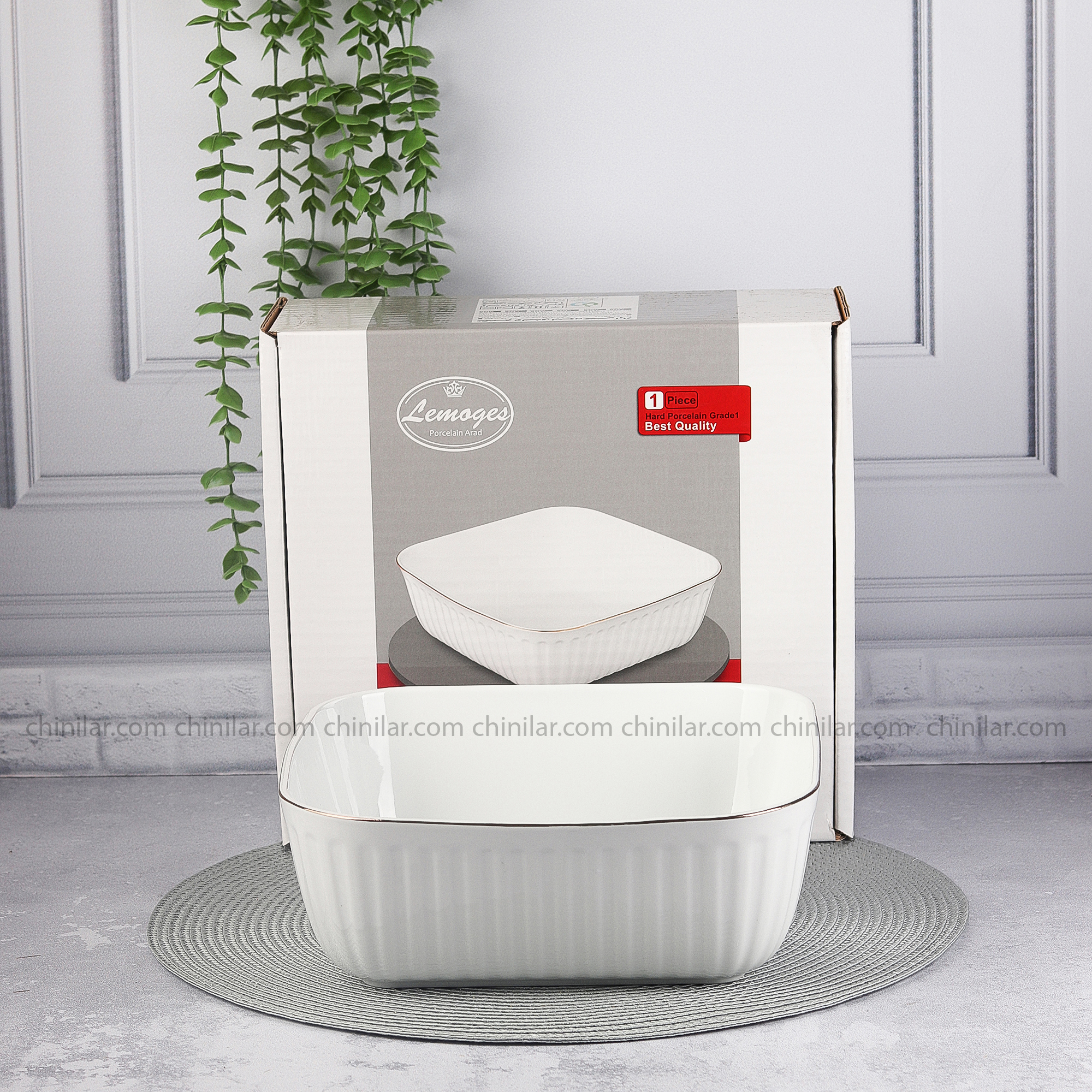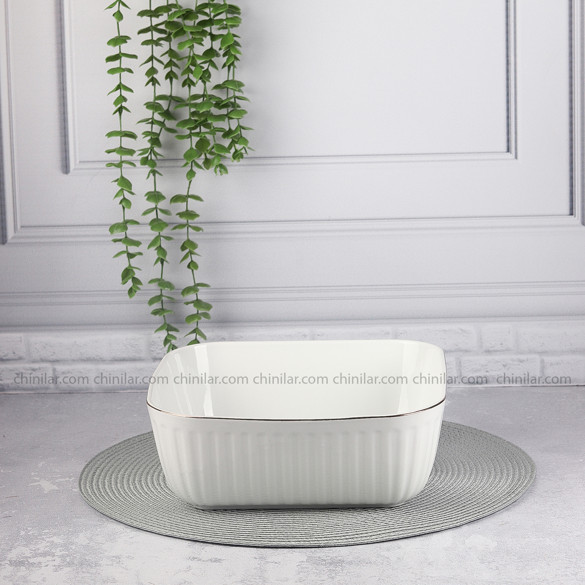کاسه مربع لارن چینی لمون سایز بزرگ خط طلا 420L