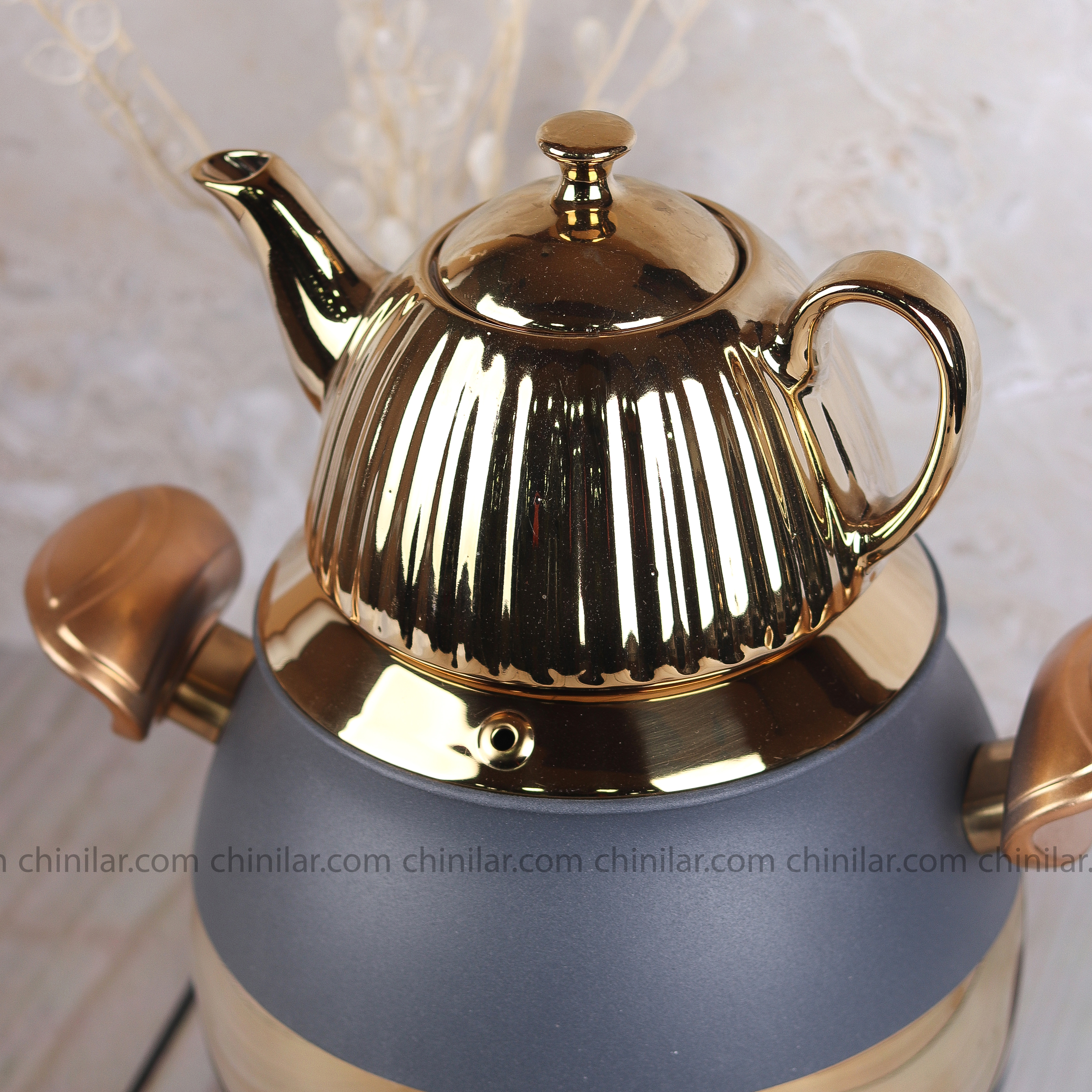 ست کتری و قوری تیتیل – طلایی + طوسی ✨