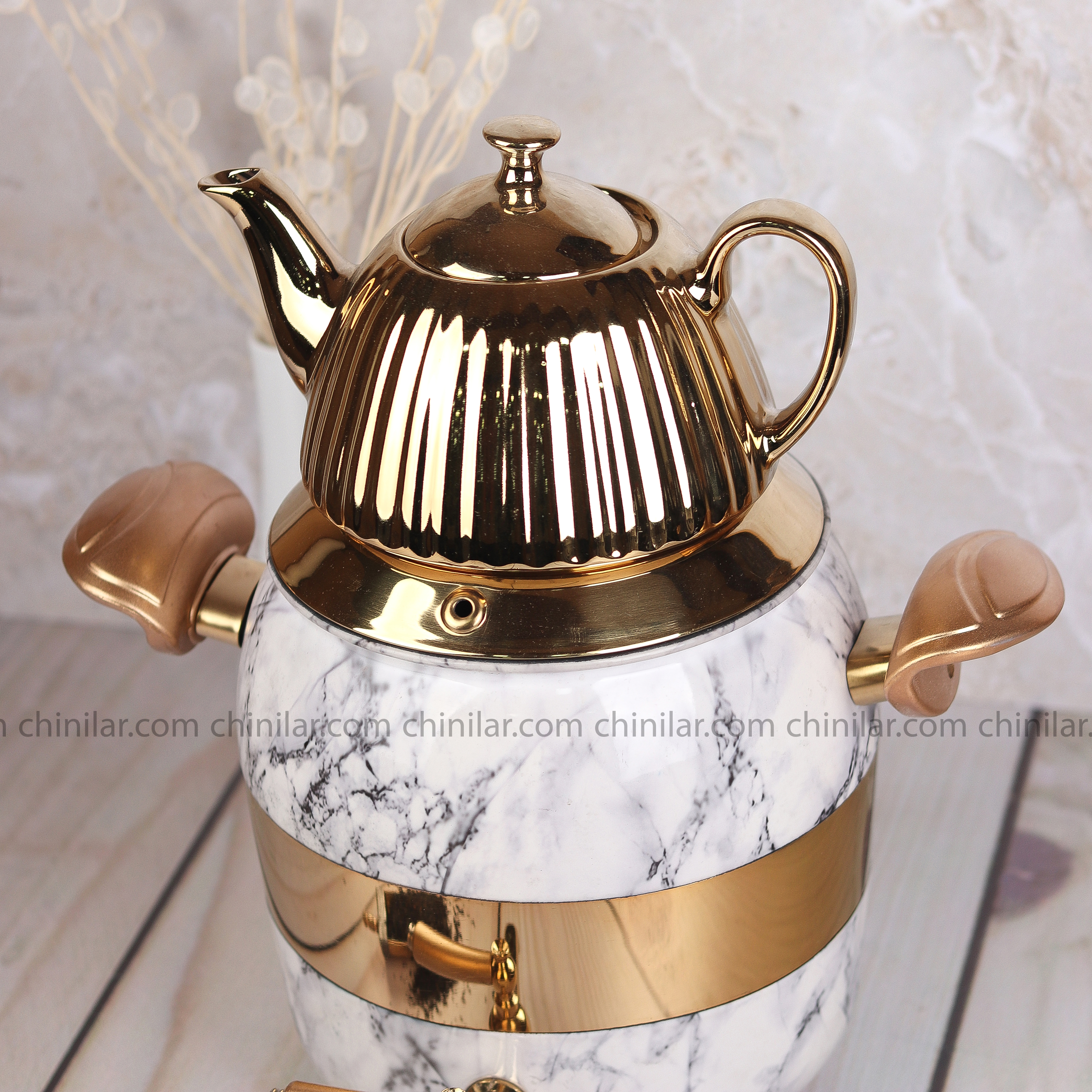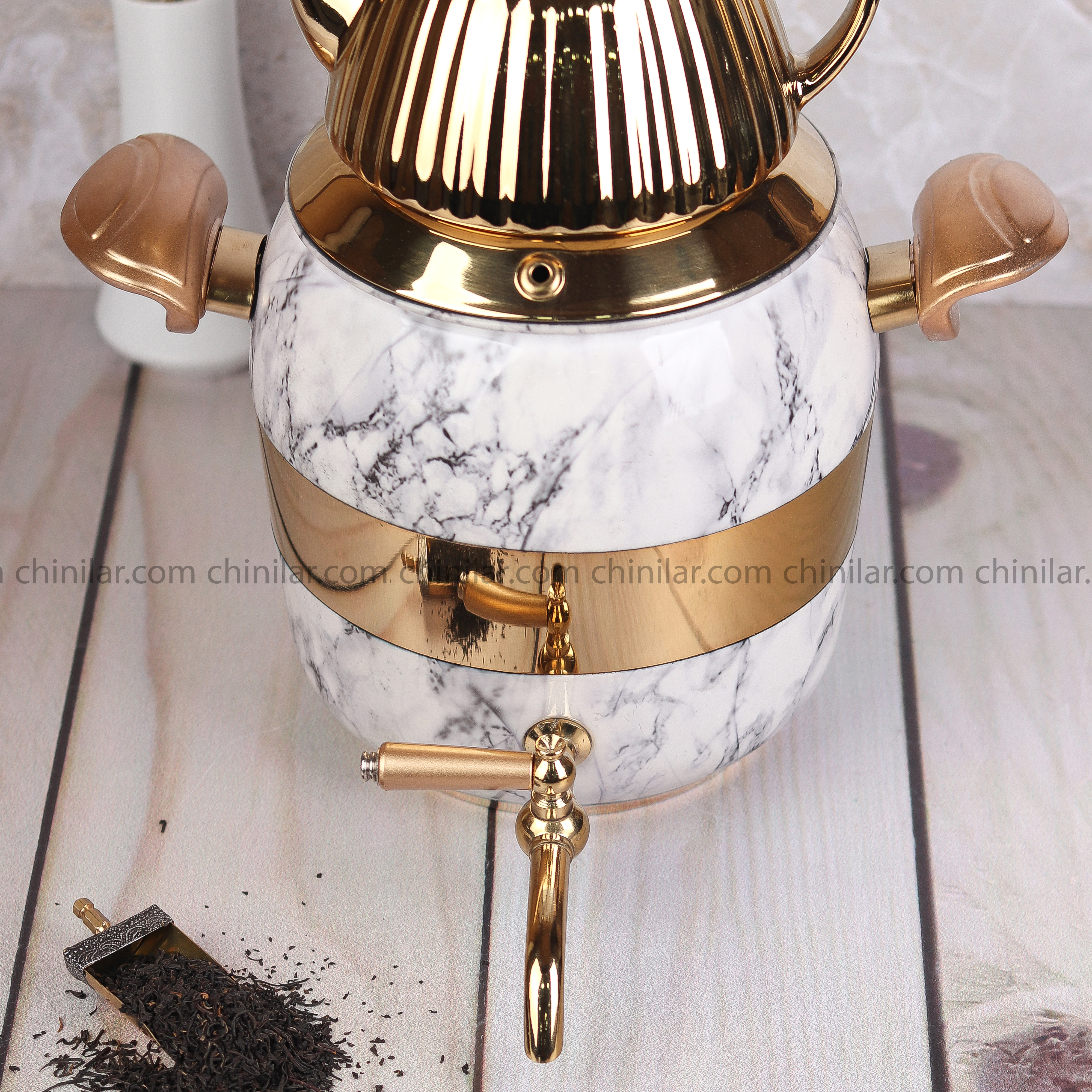 کتری و قوری استیل تیتیل مدل ترک سرامیک طلایی