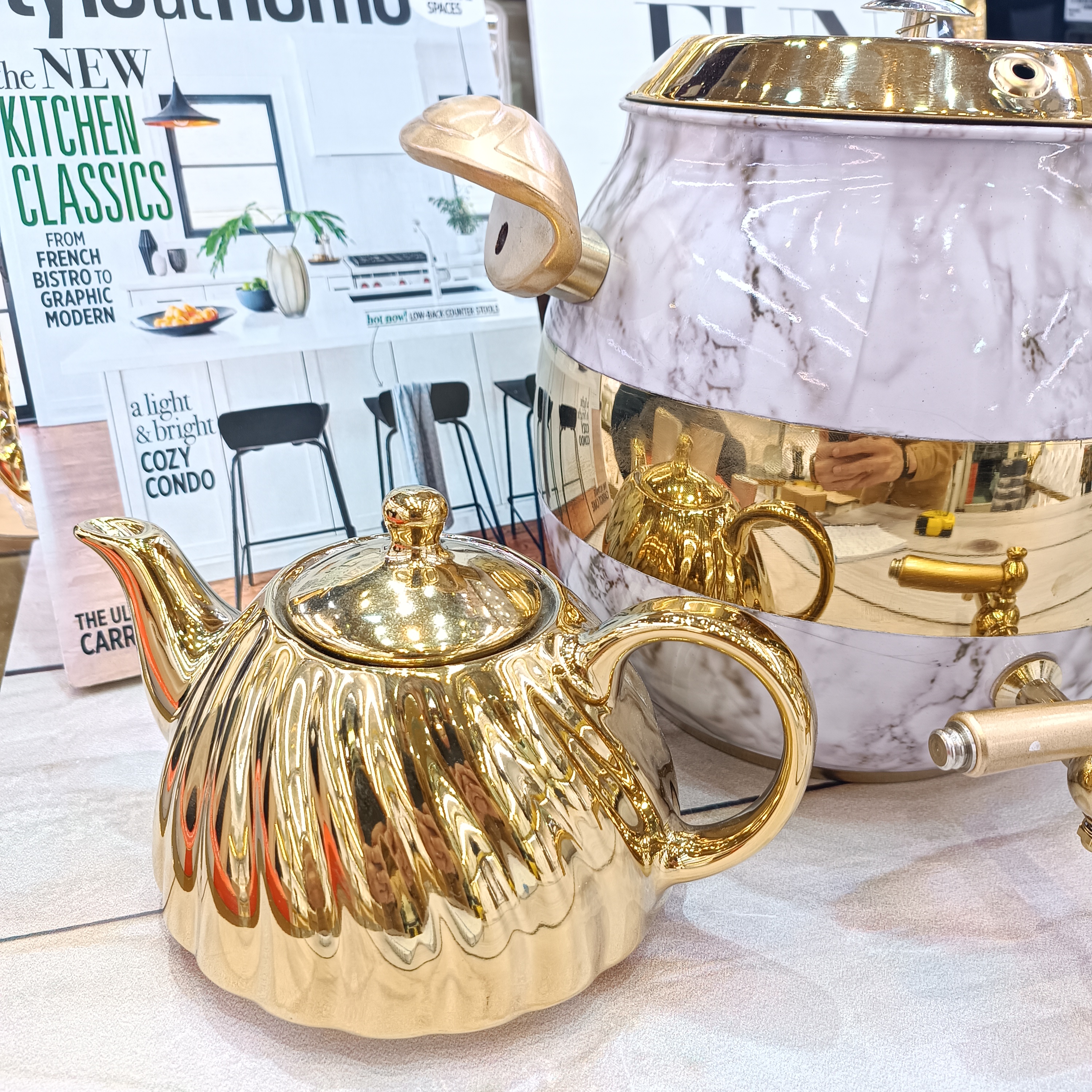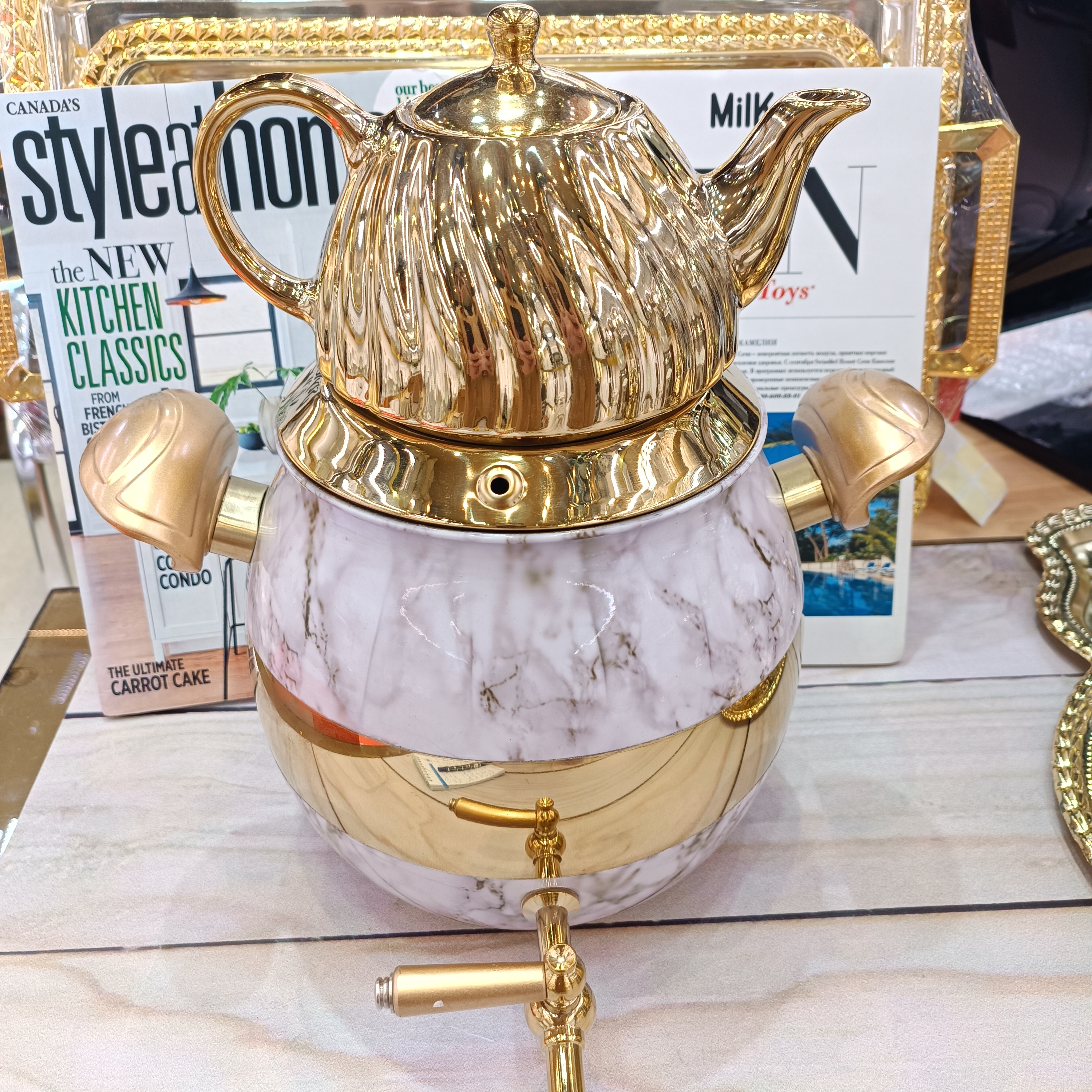کتری و قوری توپی طرح سنگی تیتیل