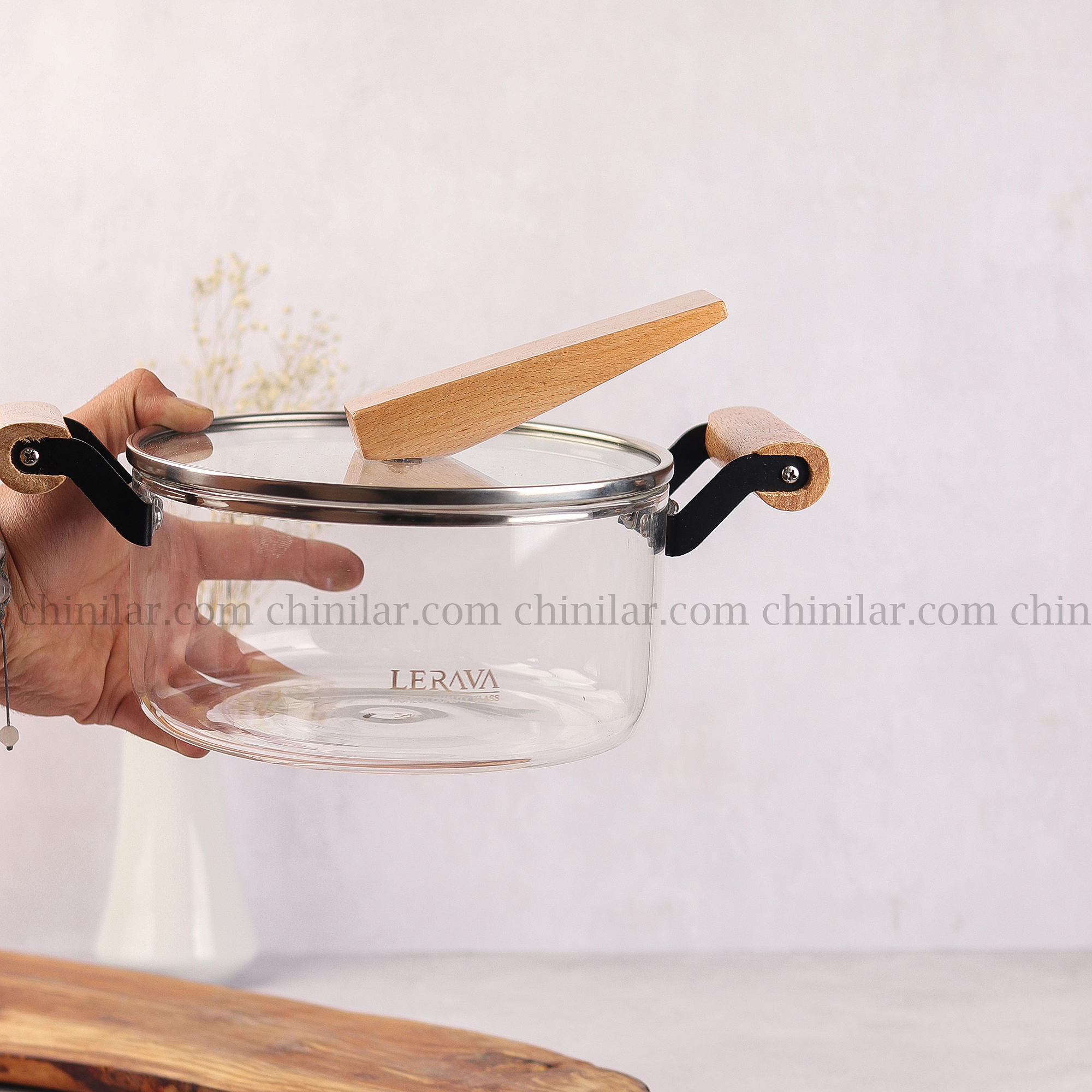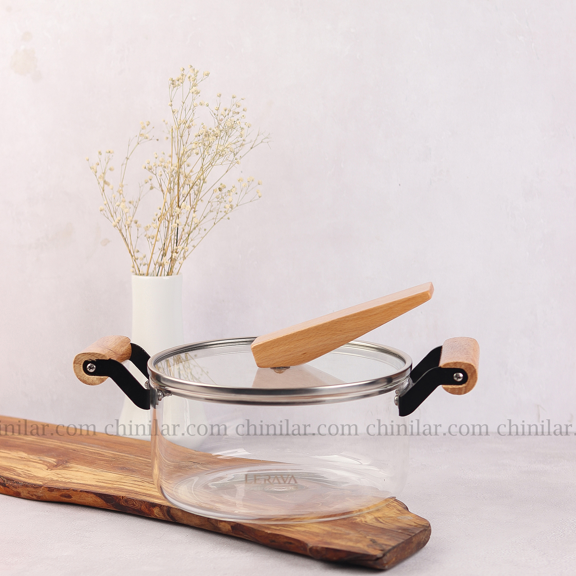 قابلمه پیرکس 2.5 لیتر لراوا دسته چوبی کج