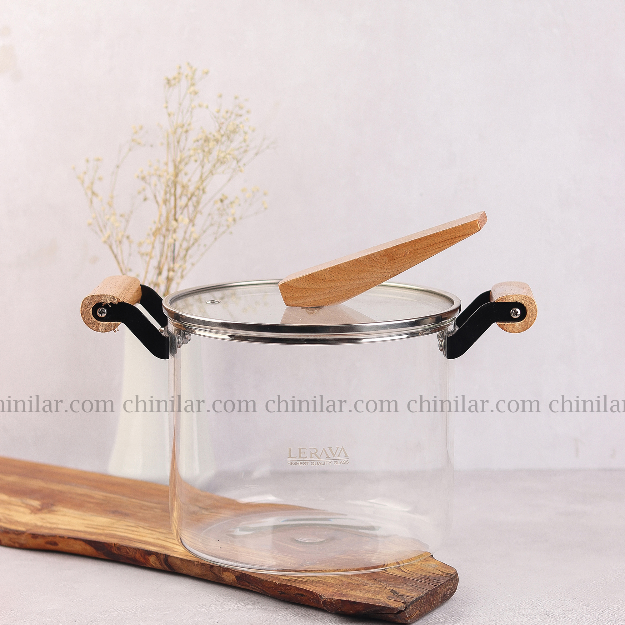 قابلمه پیرکس 4.5 لیتر لراوا دسته چوبی مستطیل