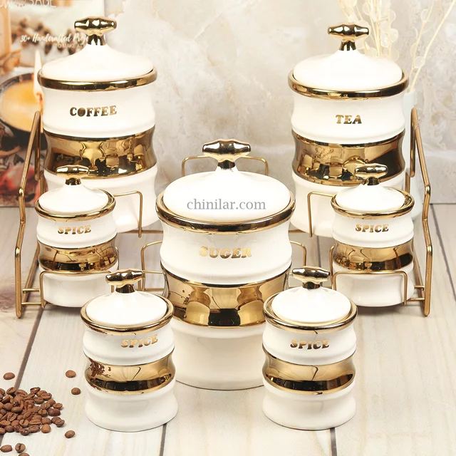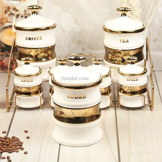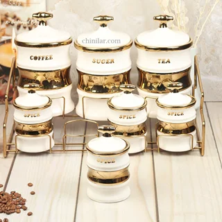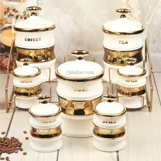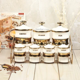 ویژگیهای محصول: شامل 7 ظرف سرامیکی: 3 عدد بانکه بزرگ برای چای، قهوه و شکر 4 عدد بانکه کوچک برای انواع ادویه