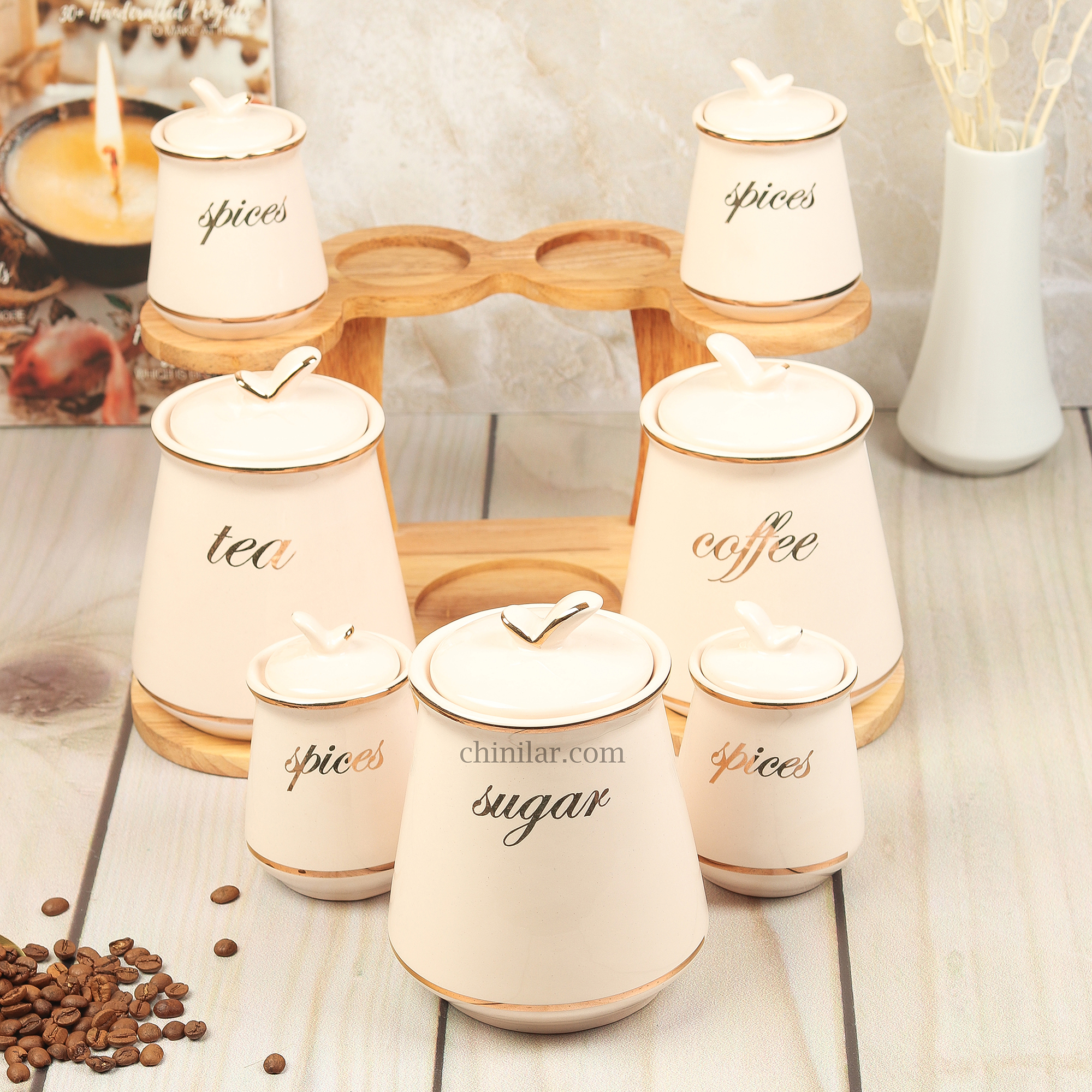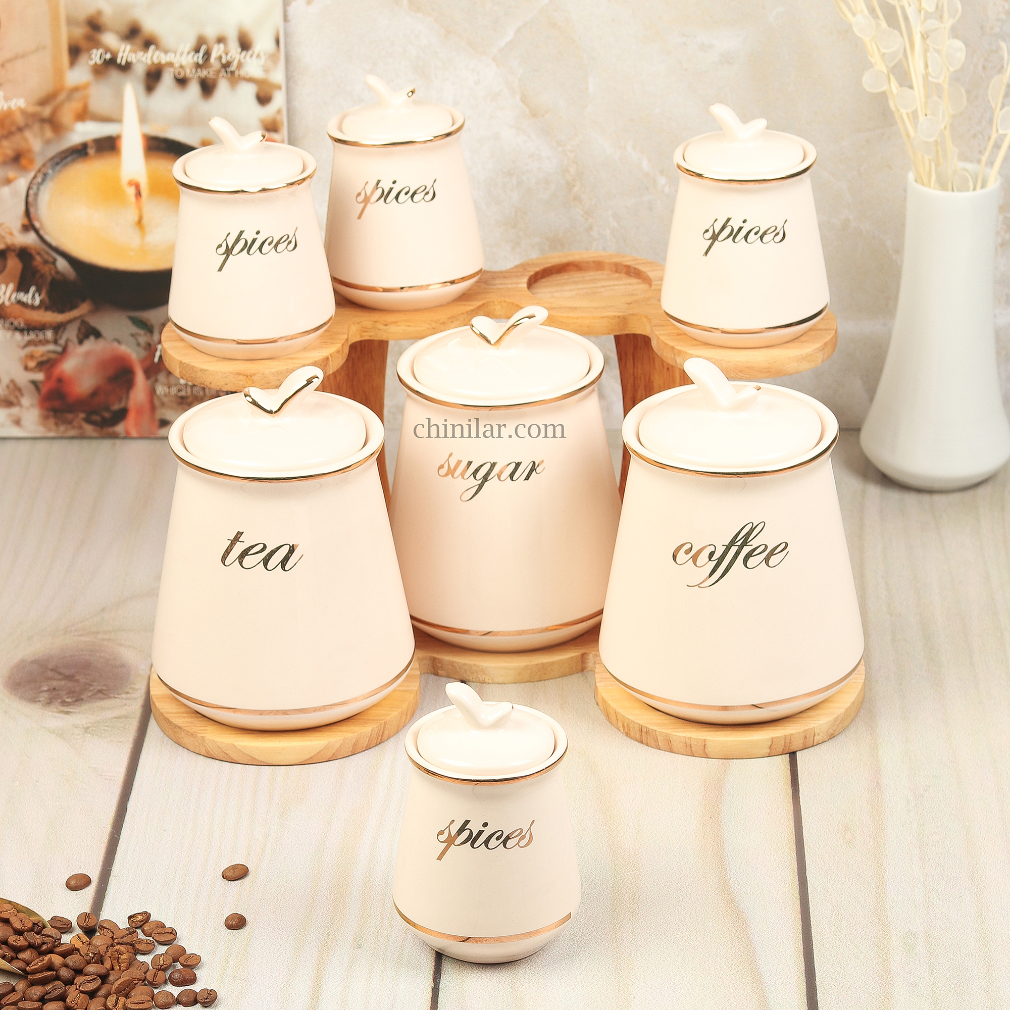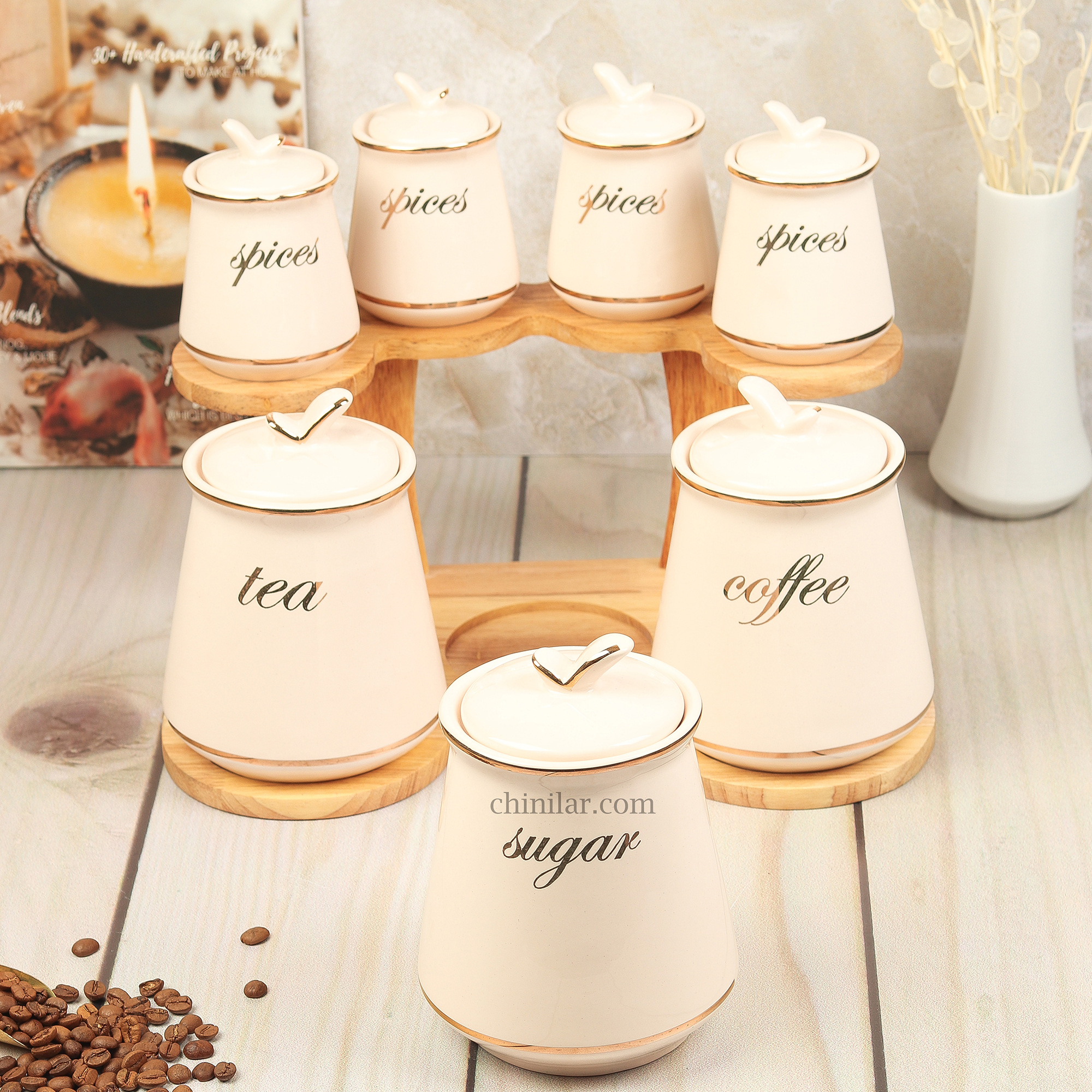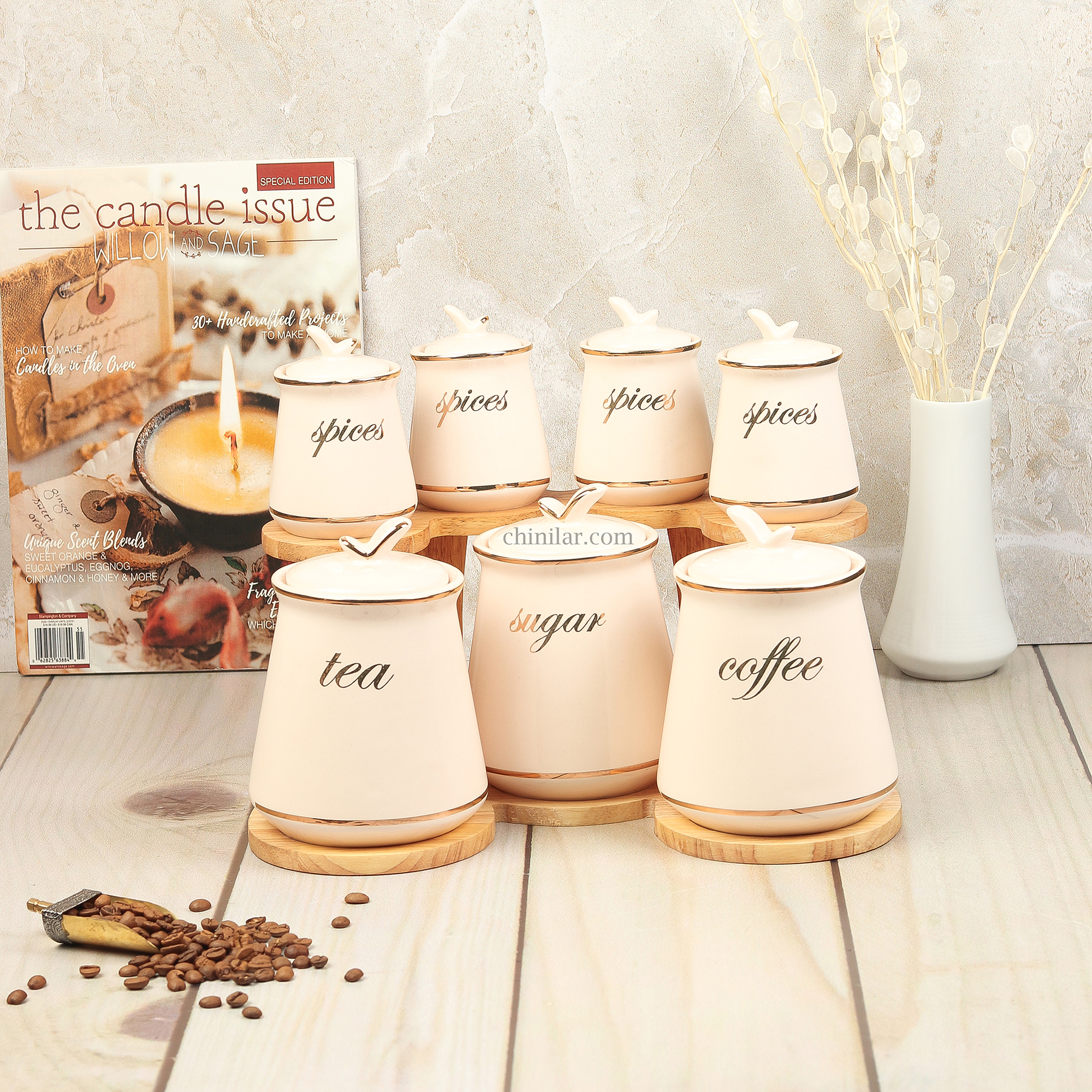 جزئیات محصول: تعداد ظروف: 7 عدد 3 بانکه بزرگ برای چای، قهوه و شکر 4 بانکه کوچک برای ادویهها