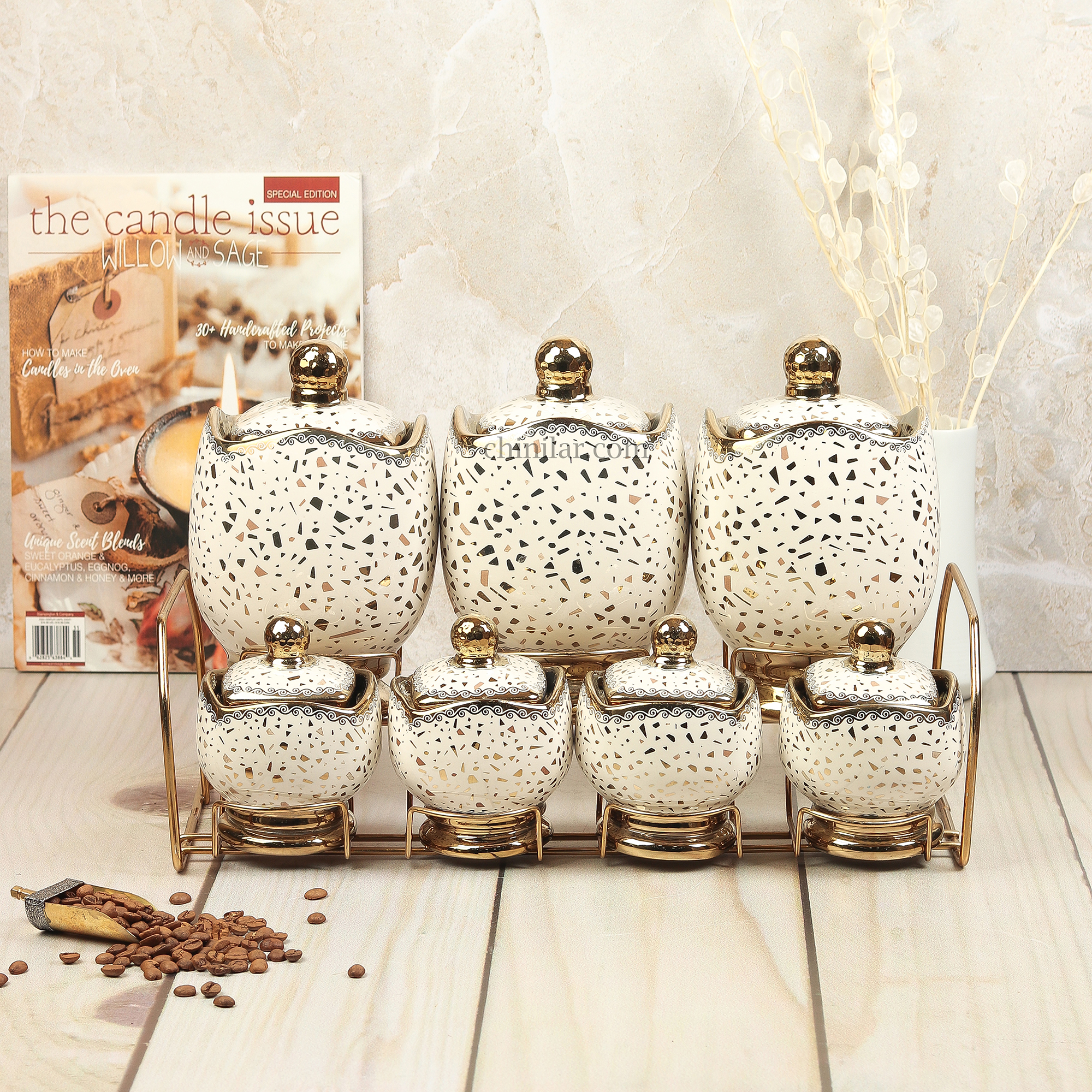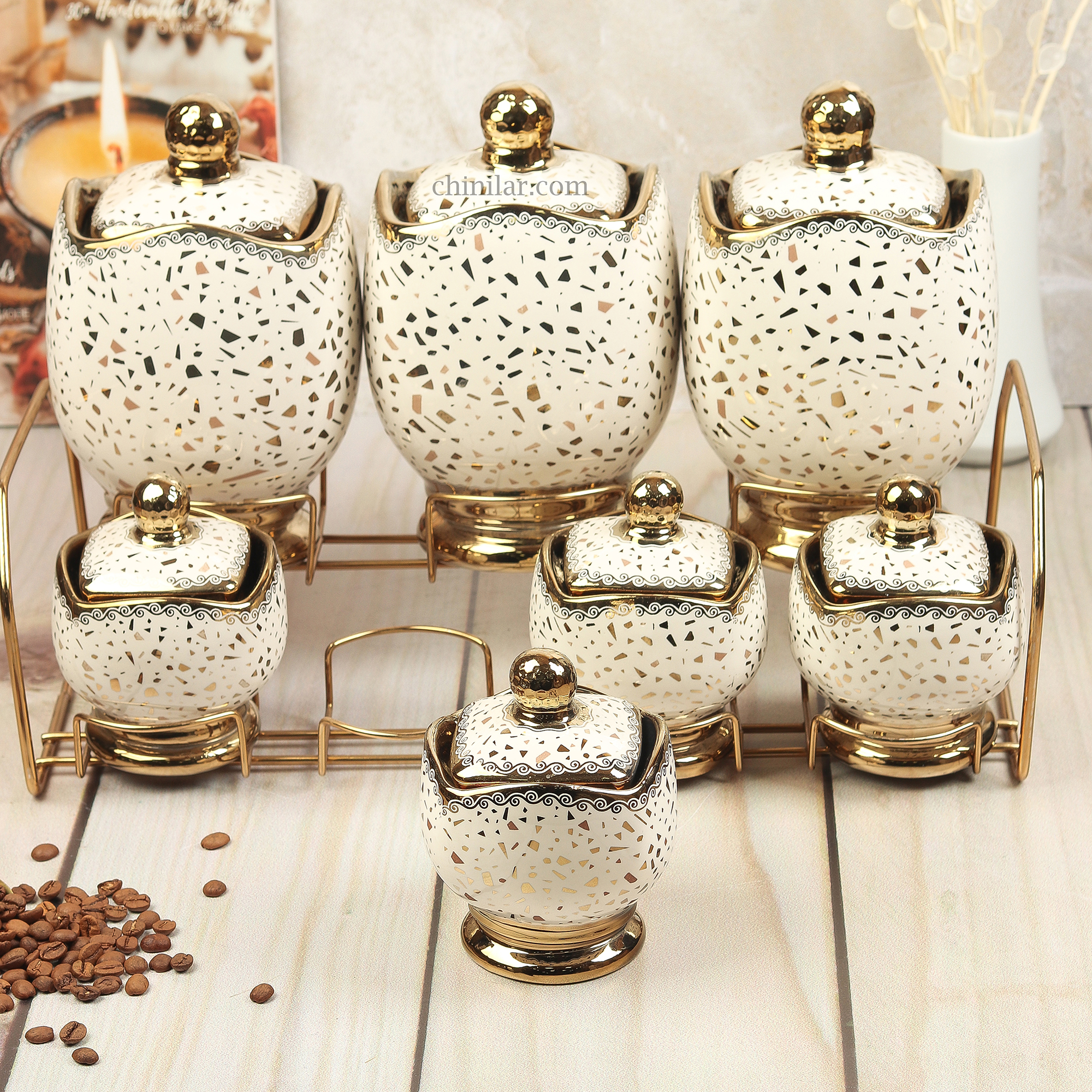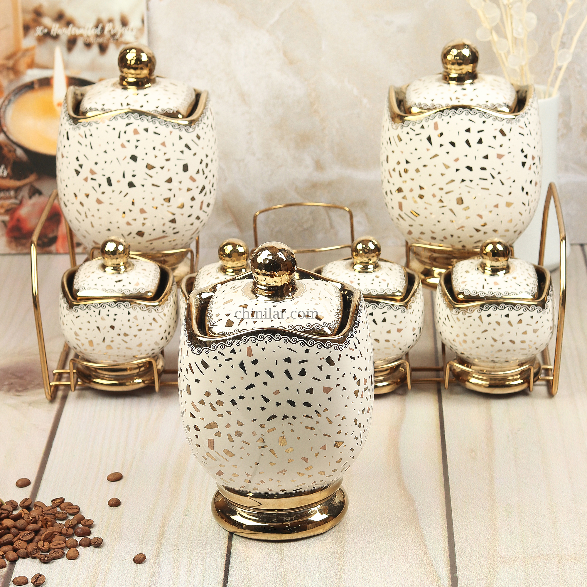 جاادویه 7 پارچه سوارز یکی از زیبا ترین و با کیفیت ترین جاادیه های موجود در بازار میباشد. جنس این محصو از چینی بوده و 3 عدد ظرف بزرگ برای نگه داری مواد بیشتر و 4 ظرف کوچک برای نگه داری مواد با حجم کمتر دارد . این محصمول یک استند فلزی برای نگه داری ظروف خود را دارا میباشد.