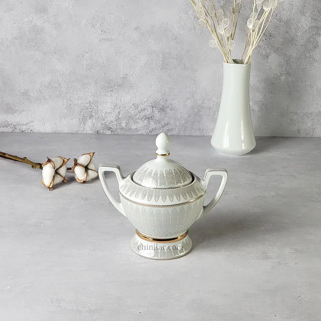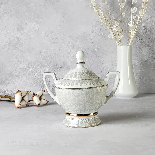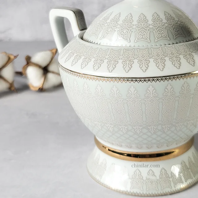 قندان طرح غزل چینی لورین با طراحی هنرمندانه و جذاب، گزینهای ایدهآل برای سرو شکر و قند در مهمانیها و دورهمیهاست. این قندان از چینی با کیفیت بالا ساخته شده و به دلیل زیبایی و ظرافت طرحها و ترکیب رنگ فیروزه ای جلوهای خاص به سفره شما میبخشد. علاوه بر کارایی، این محصول میتواند به عنوان یک هدیه زیبا در مناسبتهای مختلف نیز مورد استفاده قرار گیرد. با قندان لورین، هر لحظه را خاصتر کنید!