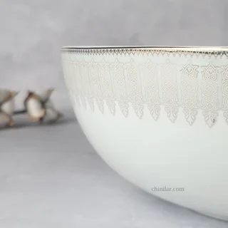 چینی سخت - کاسه سالاد و سوپ طرح غزل چینی لورین، محصولی زیبا و کاربردی است که از جنس چینی با طراحیهای هنری و منحصر به فرد ساخته میشود. این کاسهها به خاطر طرحهای ظریف و رنگهای فیروزه ای ملایم، جلوهای شیک و مدرن به سفره میبخشند.