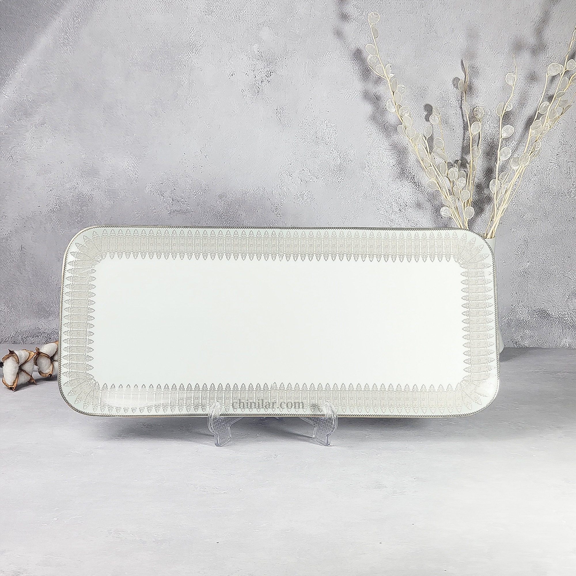 چینی سخت - رولت خوری سایز بزرگ طرح غزل چینی لورین، با طراحی زیبا و هنری، گزینهای عالی برای سرو دسرها و رولتهای خانگی و کباب است.