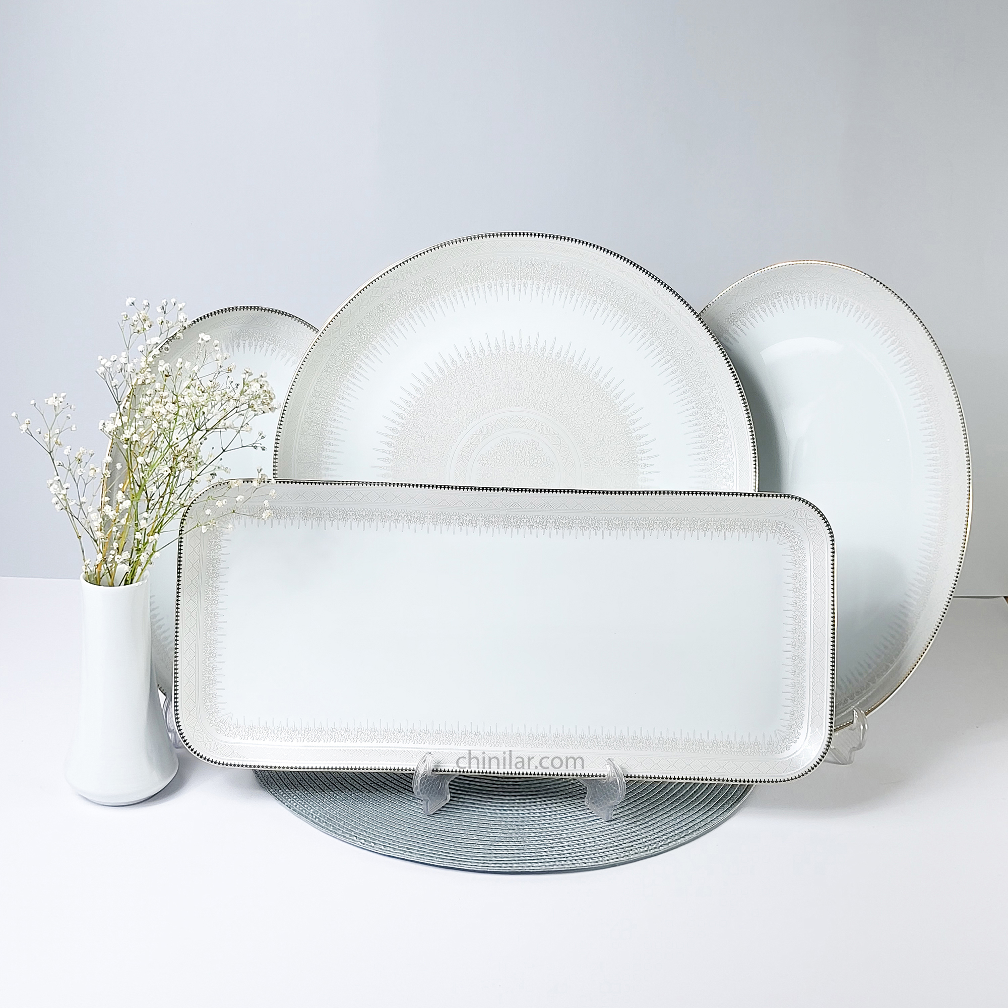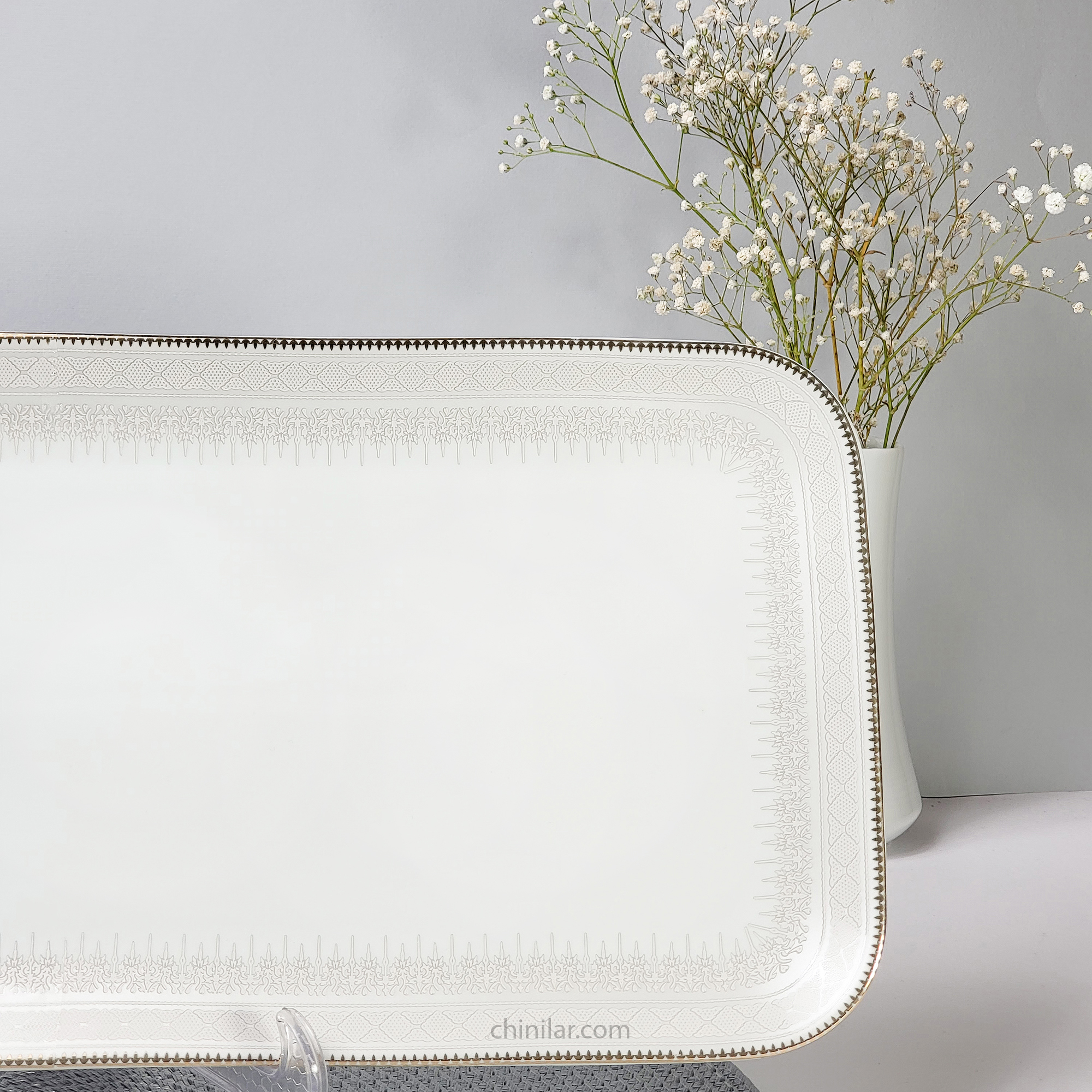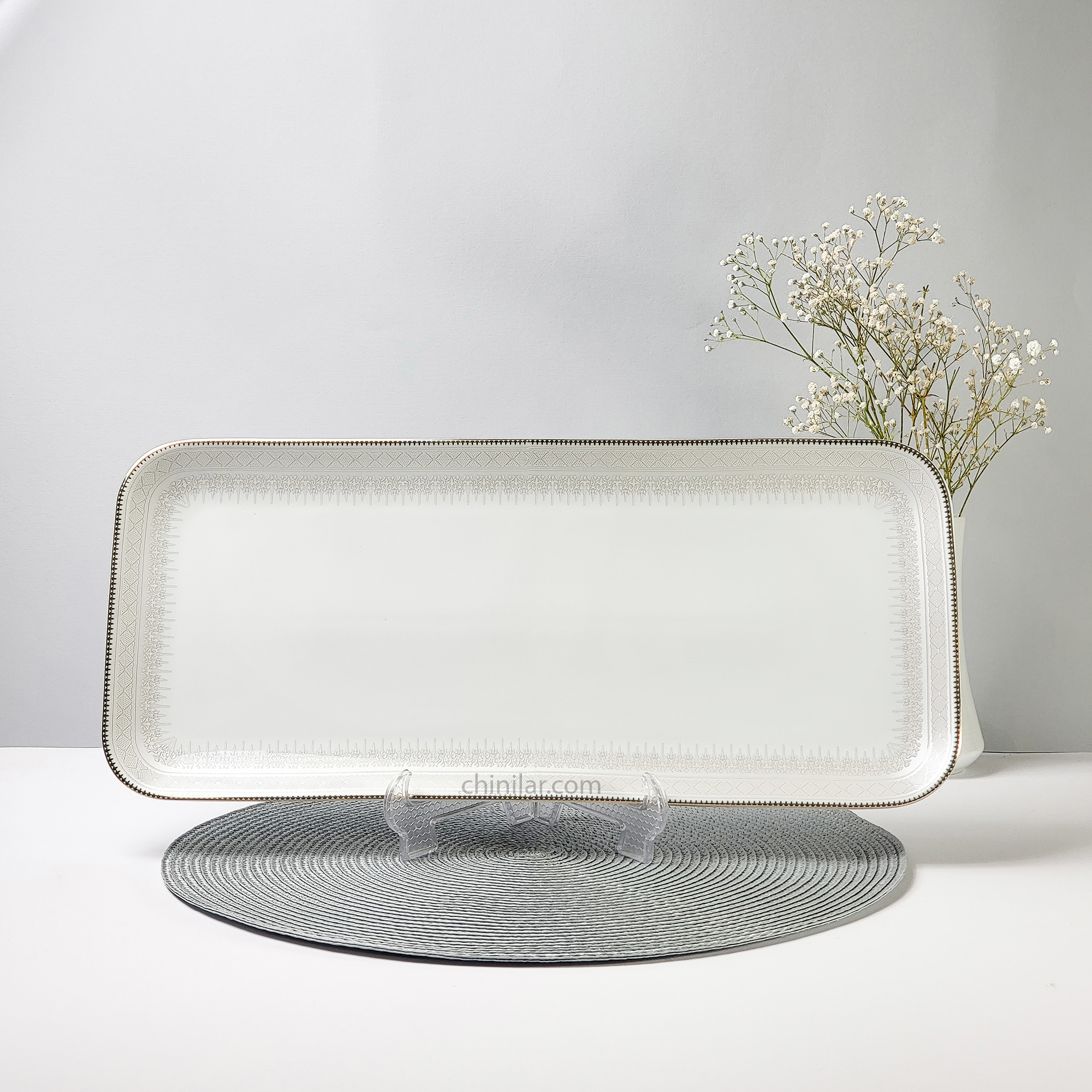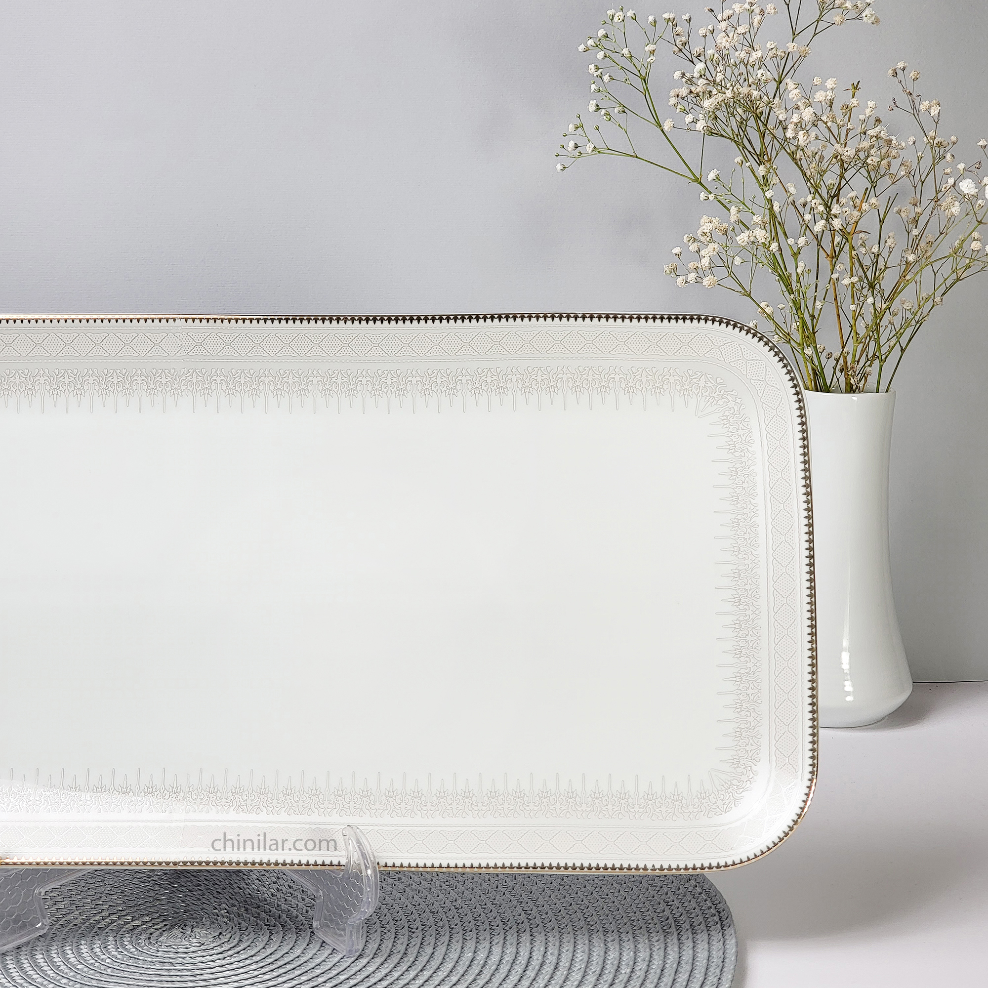 چینی سخت - رولت خوری سایز بزرگ طرح الیزابت چینی لورین، با طراحی زیبا و هنری، گزینهای عالی برای سرو دسرها و رولتهای خانگی و کباب است.