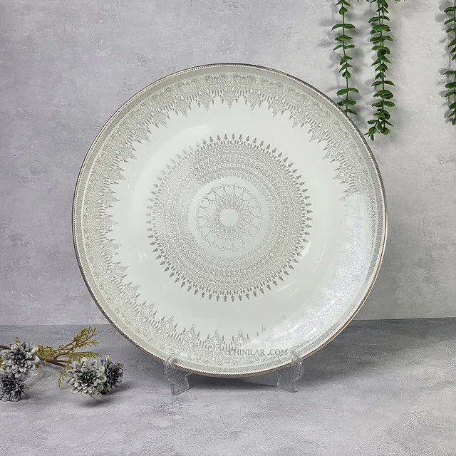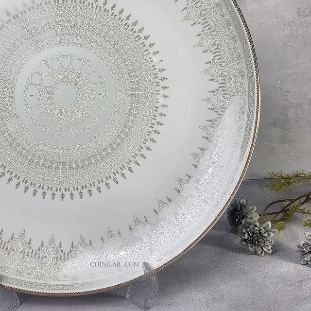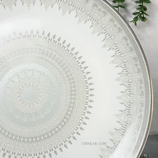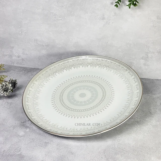 2. کیفیت عالی: • ساخته شده از چینی با کیفیت بالا، این دیس نه تنها زیباست بلکه بسیار مقاوم و بادوام نیز میباشد. این ویژگی باعث میشود که شما بتوانید از آن برای سالها استفاده کنید.