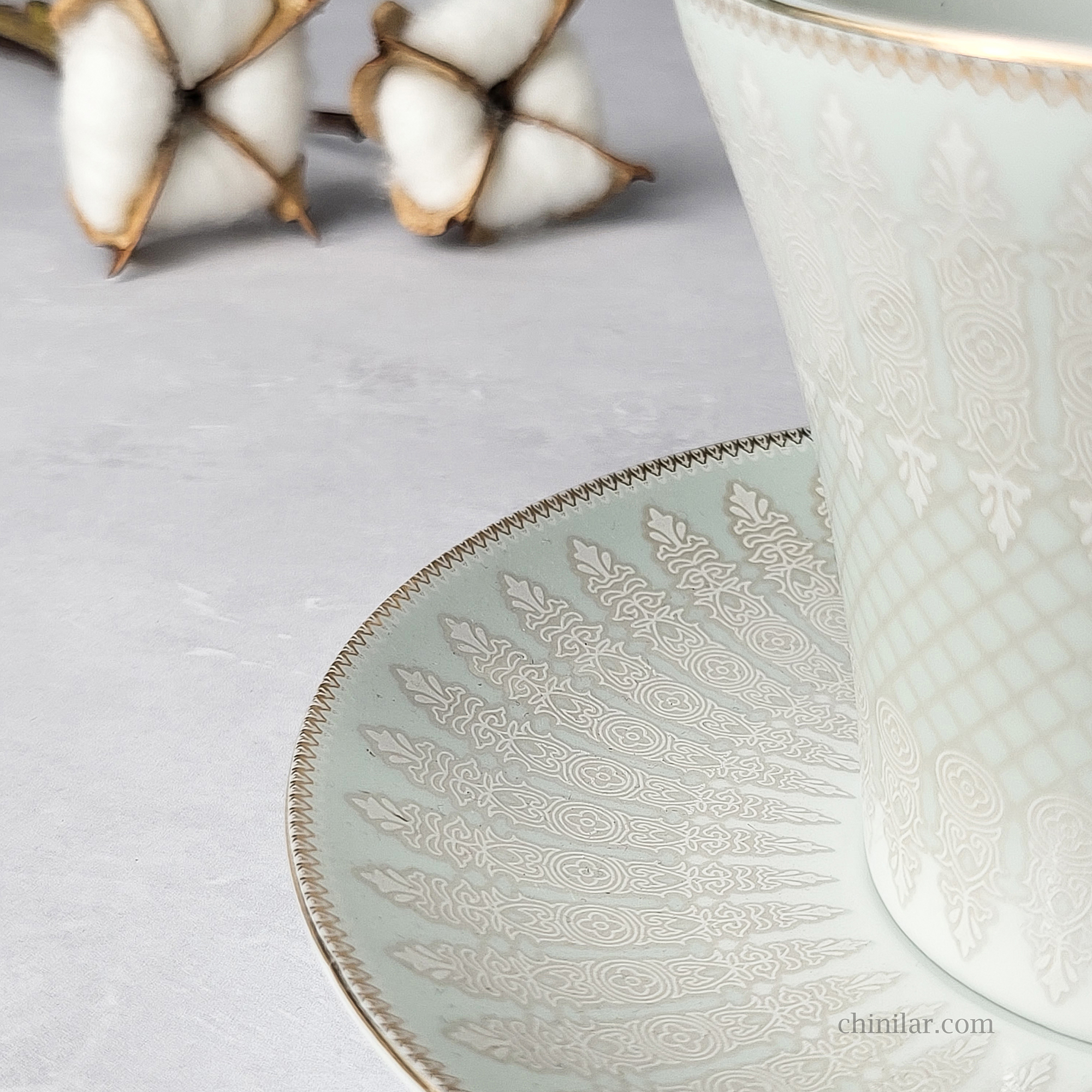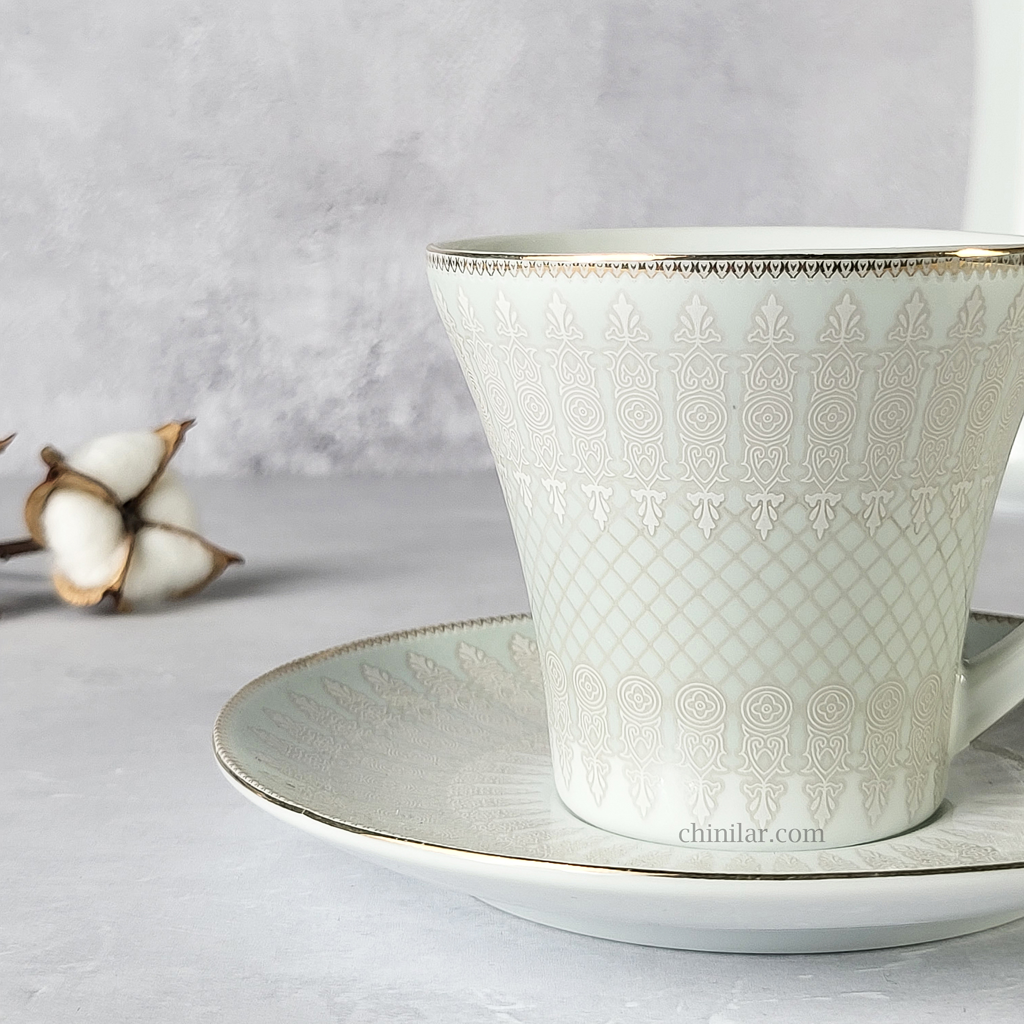 • طرح غزل با الهام از هنر چینی، شامل نقوش لطیف و رنگهای دلنشین است که هر فنجان و نعلبکی را به یک اثر هنری تبدیل میکند. این طراحی کلاسیک و در عین حال مدرن، مناسب برای هر سلیقهای است.