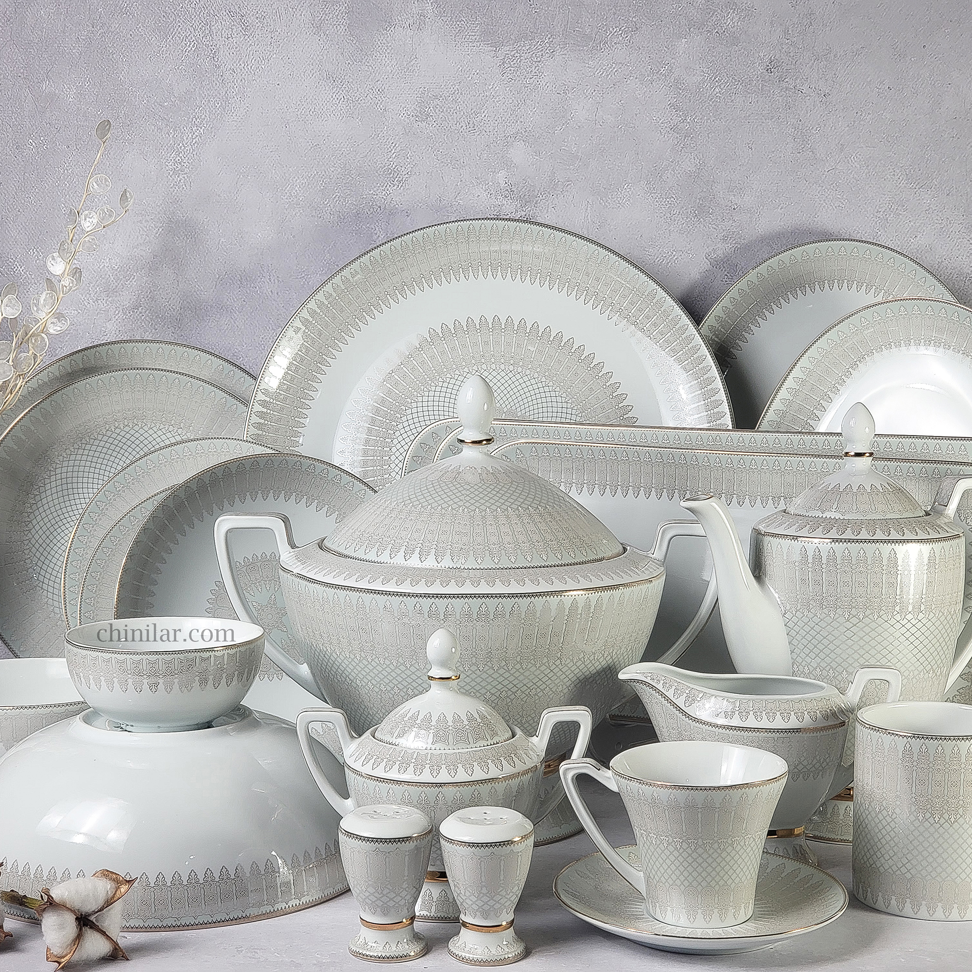 • این سرویس از چینی با کیفیت عالی ساخته شده است که نه تنها زیبایی را به ارمغان میآورد، بلکه دوام و ماندگاری بالایی نیز دارد. این ویژگیها باعث میشود که شما بتوانید از این سرویس در طولانیمدت استفاده کنید.