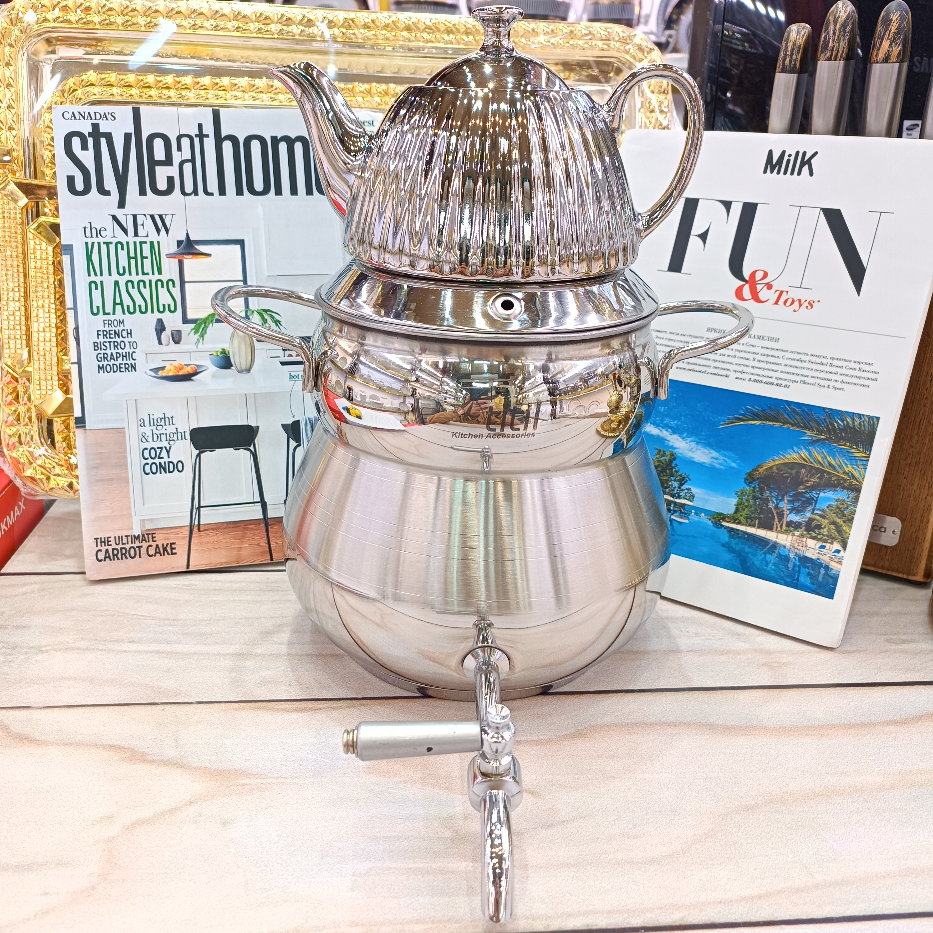 کتری و قوری آوا دسته استیل 5لیتر کد352تیتیل