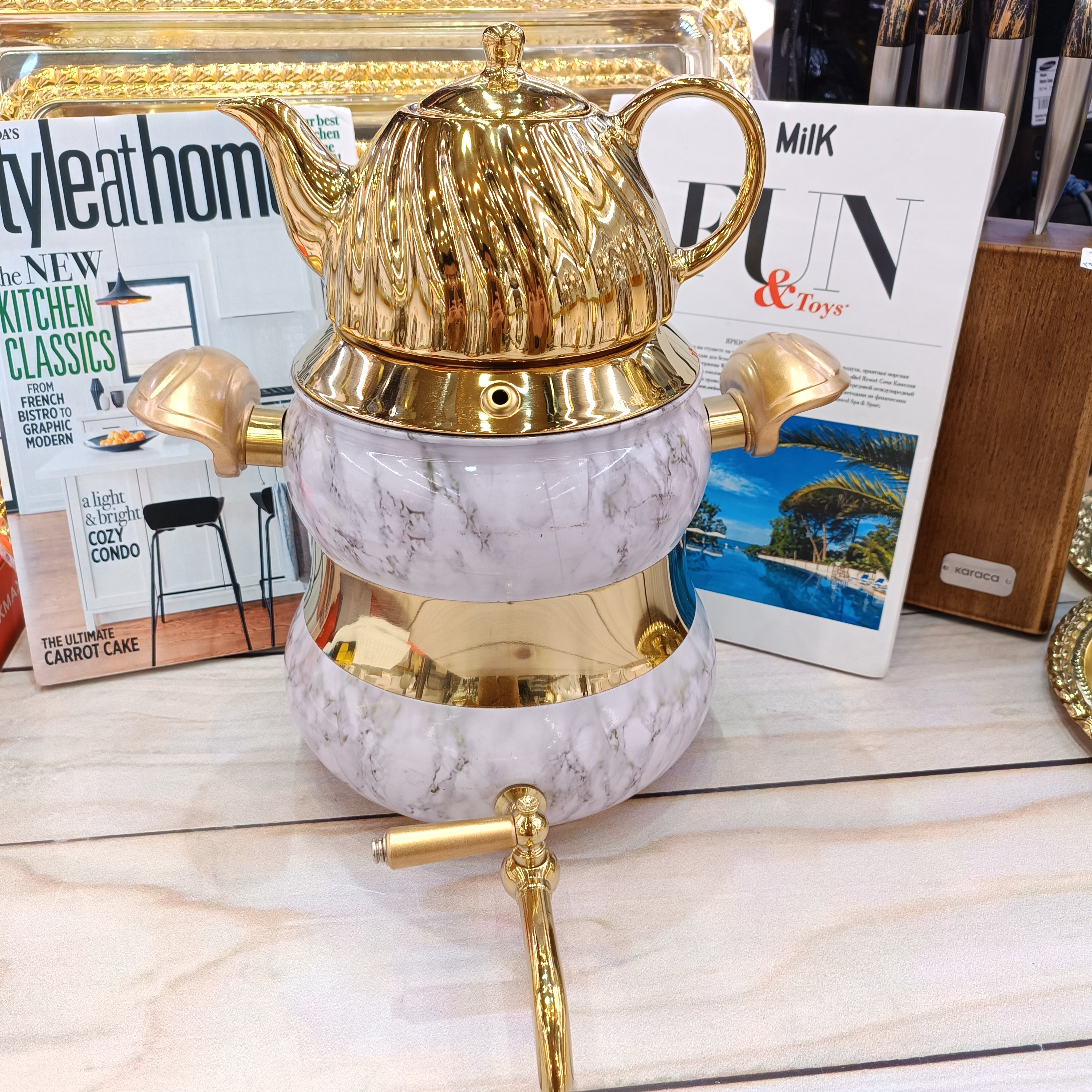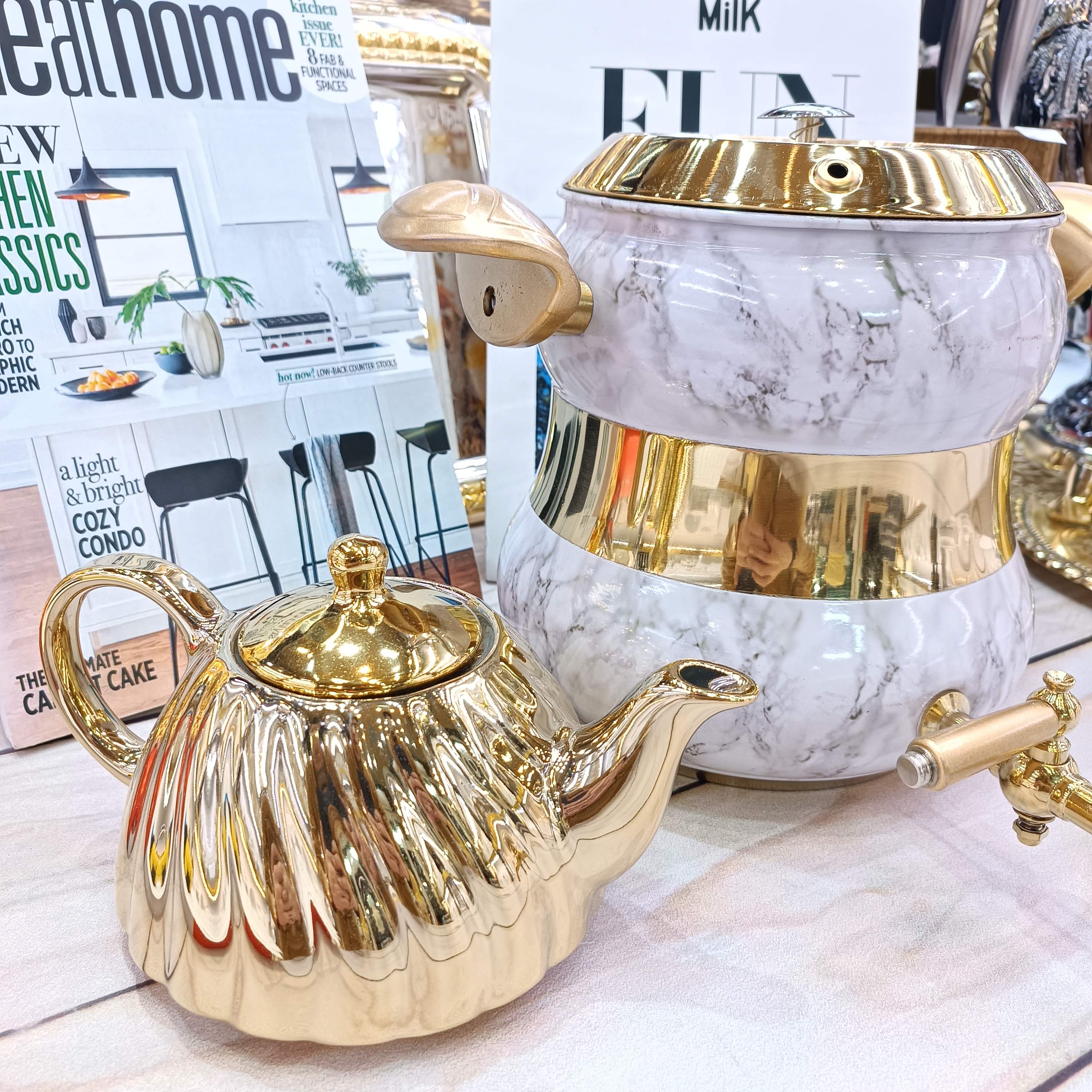 کتری و قوری دیبا 5لیتری سرامیکی طلایی سفید