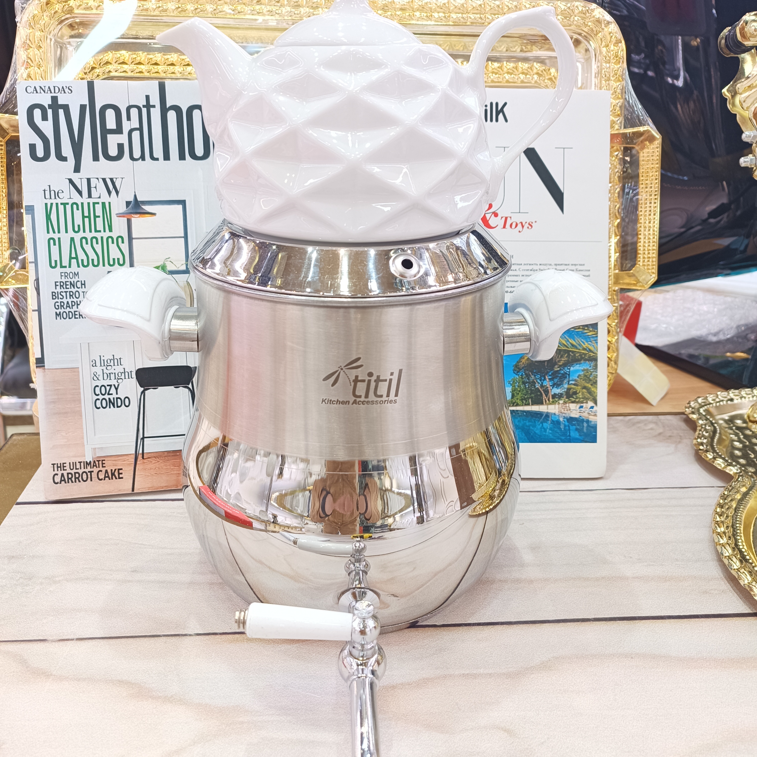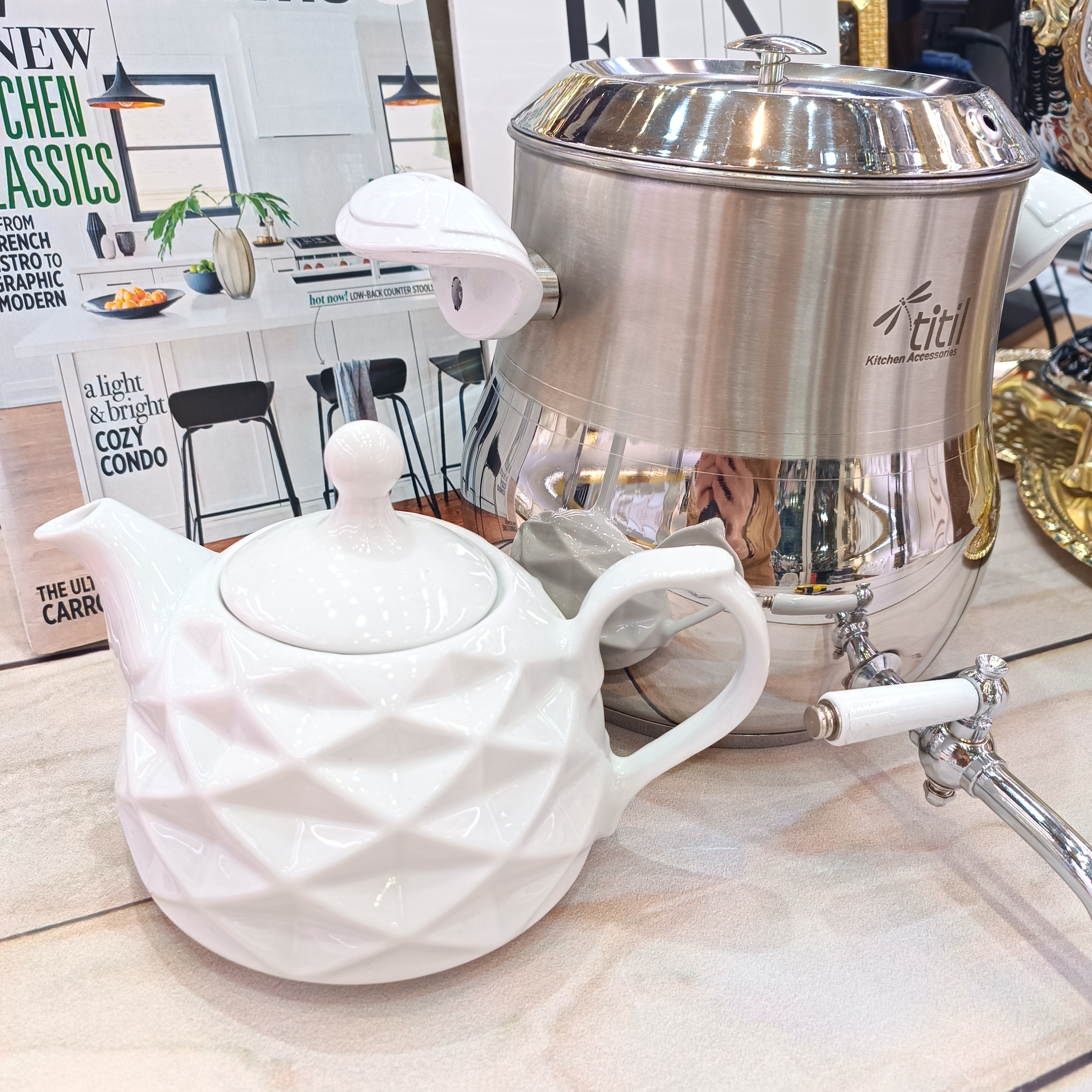 کتری و قوری گلابی طرح 4 تیتیل یکی از محصولات زیبا و کارآمد در دسته لوازم آشپزخانه است. این مجموعه معمولاً شامل یک کتری با طراحی خاص و یک قوری متناسب با آن میباشد. ویژگیهای کلیدی:1. طراحی منحصر به فرد: طراحی گلابی شکل که جلوهای زیبا و مدرن به آشپزخانه میبخشد.2. جنس: معمولاً از مواد با کیفیت مانند استیل یا سرامیک ساخته شده که دوام و ماندگاری بالایی دارد.3. عملکرد: قابلیت جوش آوردن سریع آب و تهیه چای یا دمنوش با طعم عالی.4. حجم مناسب: معمولاً دارای ظرفیت مناسب برای استفاده روزمره یا مهمانیهاست.5. نگهداری آسان: تمیز کردن و نگهداری این محصول بسادگی انجام میشود.کتری و قوری گلابی طرح 4 تیتیل، انتخابی ایدهآل برای افرادی است که به دنبال ترکیبی از زیبایی و کارایی در آشپزخانه خود هستند.