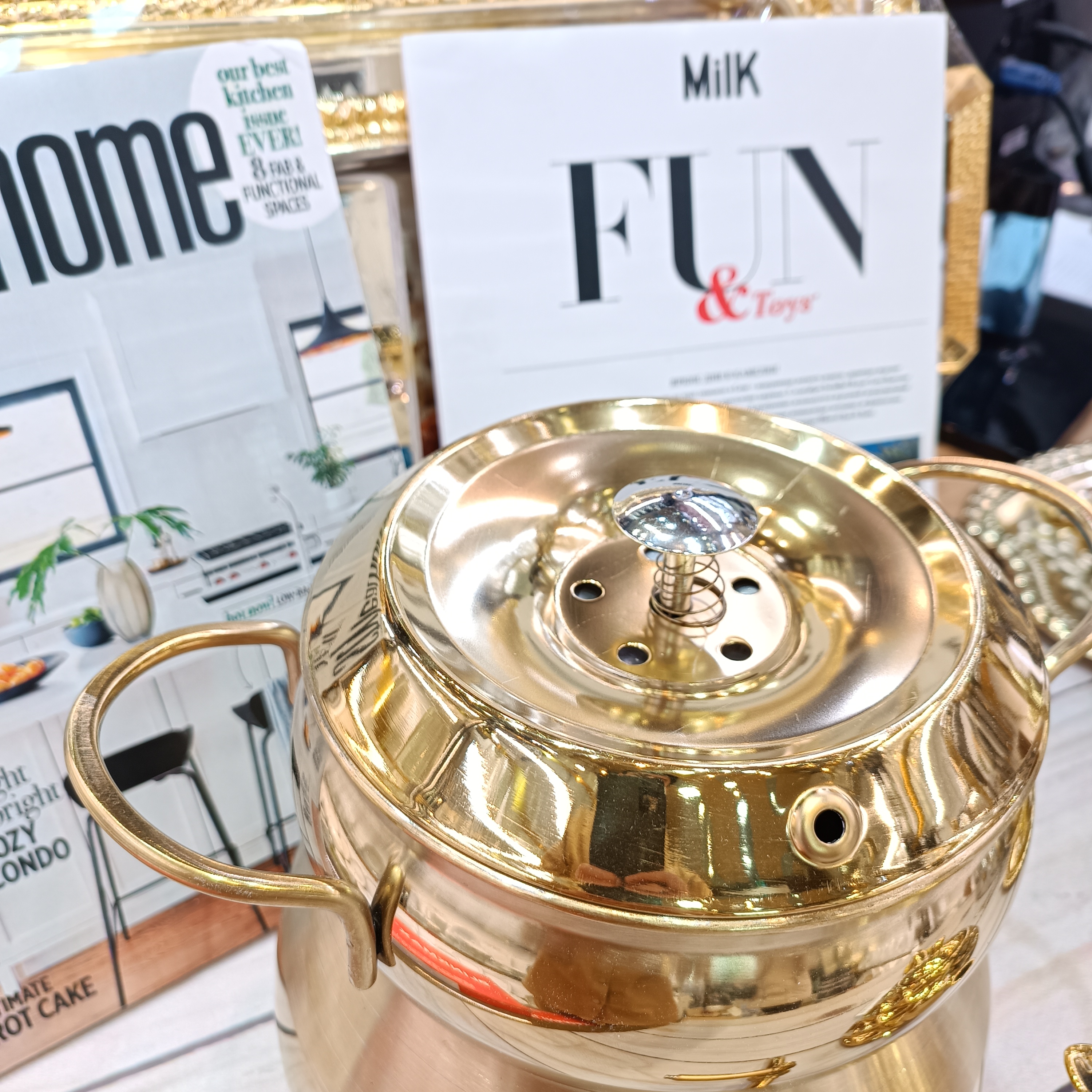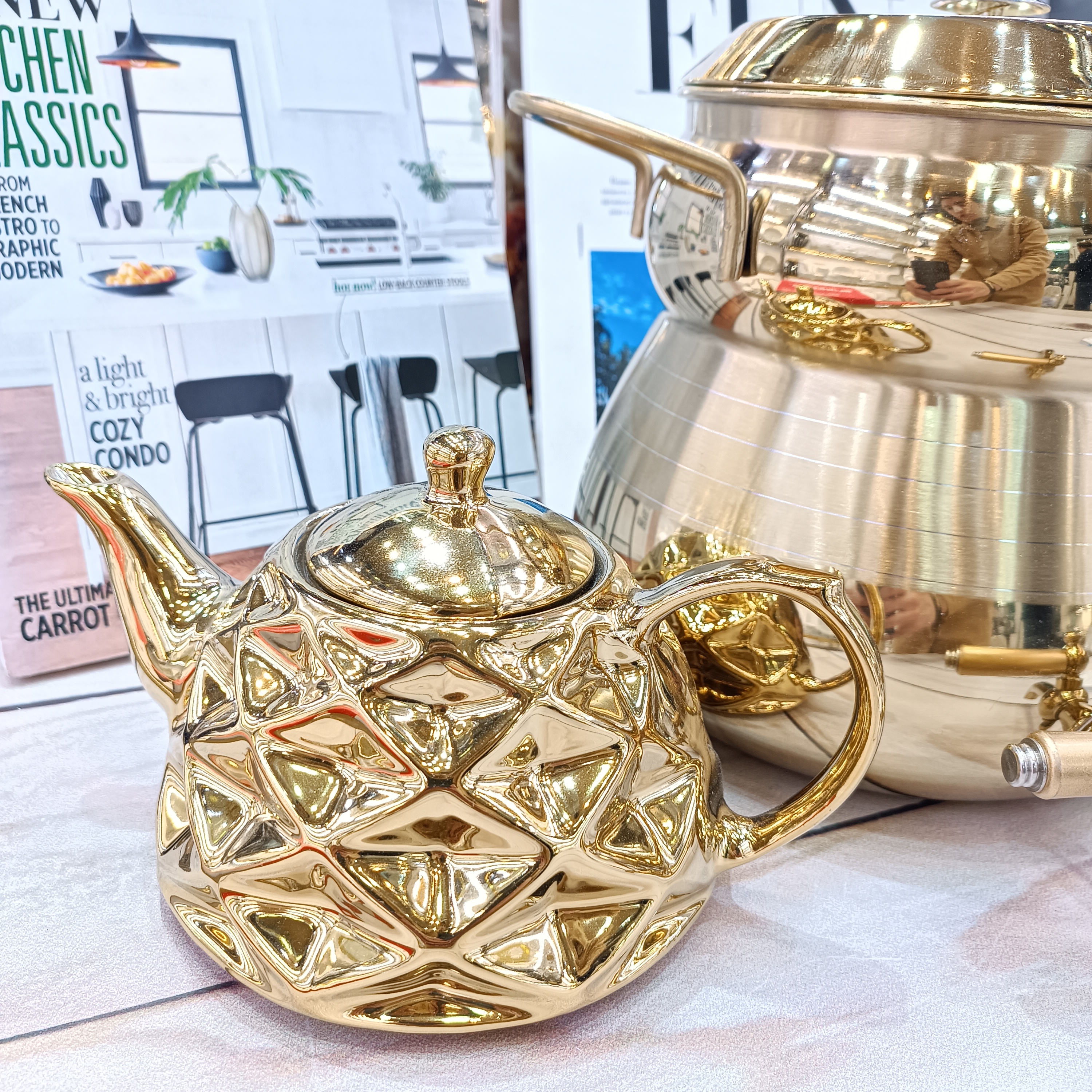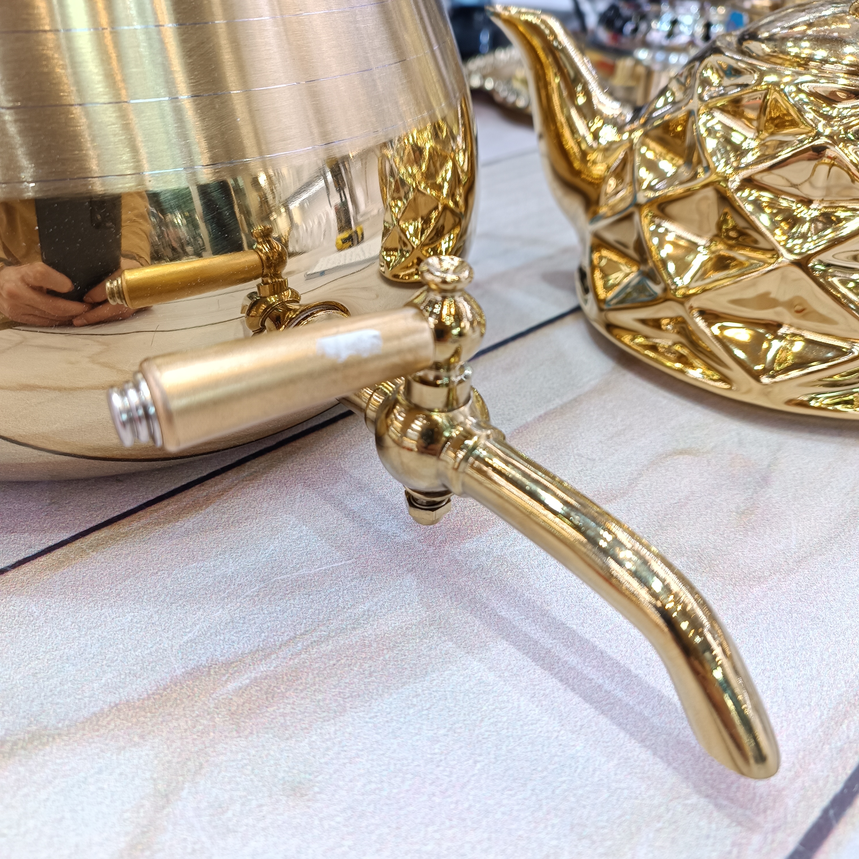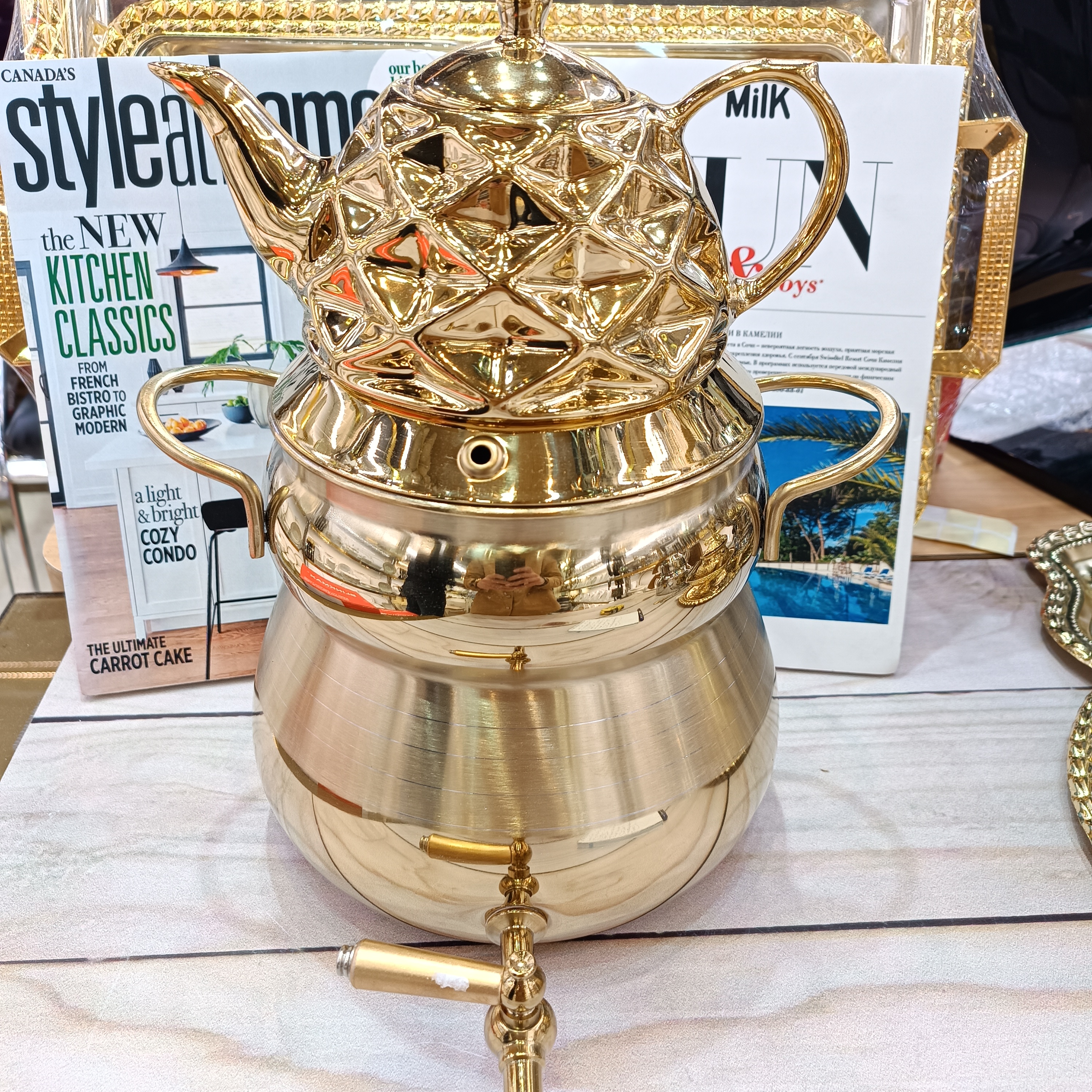 کتری و قوری آوا طلایی دسته استیل،کف ساده
